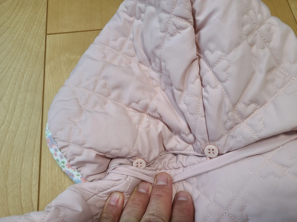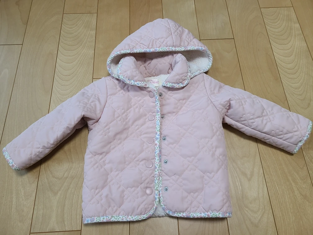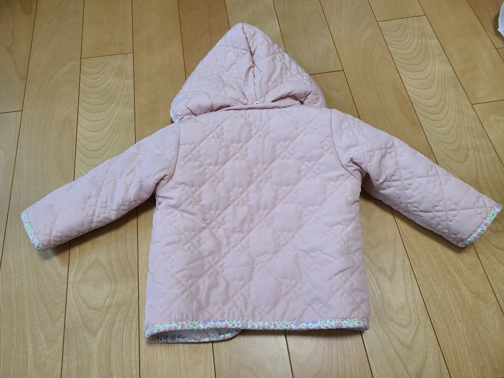 あたたかさ子供用のキルティングジャケットです ・色:ピンク ・サイズ:80cm ・型番: EC24AW34643 ・キルティングデザイン ・フード付き ・全体的にきれい 中古品であることご了承ください