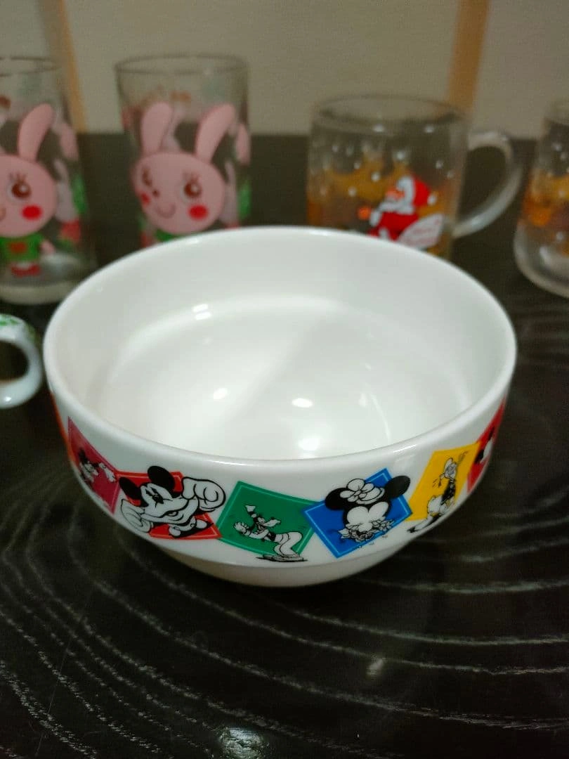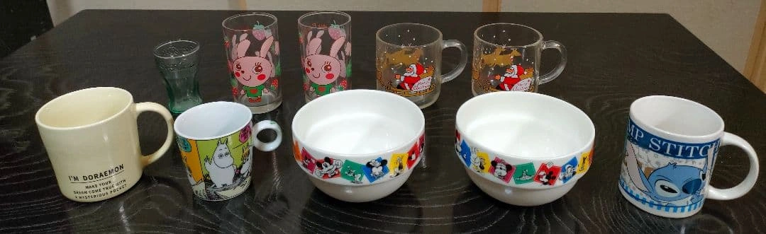 ご覧いただきありがとうございます。 子供用食器、キャラクター食器など10点のまとめ売りです。 ミッキー・ディズニーキャラクターのボウル×2 スティッ チのマグカップ ムーミンのマグカップ ドラえもんのマグカップ うさぎのキャラクター(ストロベリーバニー)のグラス×2 サンタクロースとトナカイのグラス×2 コカ・コーラのミニグラス 使用感はかなりありますが、食器としてはまだまだ使えます。 1点ずつプチプチで包み、リサイクル段ボールで梱包いたします。 素人保管にご理解の上、ご購入いただけると幸いです。