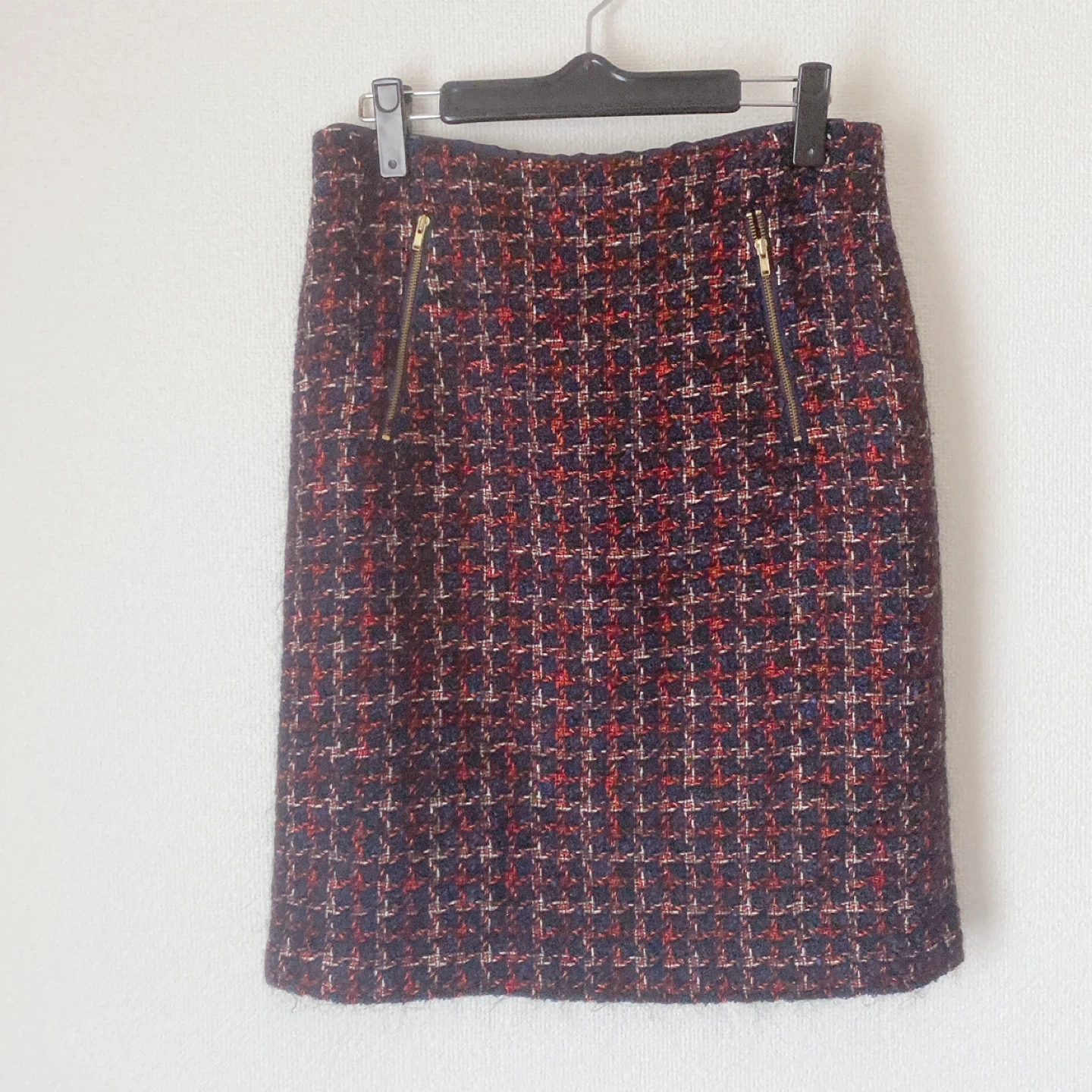 ツイードのスカートです。 色合いがとても綺麗だなと思い買ったものの履かないので出品させていただきます。 サイドジップはポケットになっています。 バックはフロントにジップで脱ぎ着でき、センターにスリットが入っています。 平置きで ウエスト 約36cm 丈 約54cm 個人保管なので、 神経質な方はご確認の上、お願い致します☺︎ タバコは吸いません
