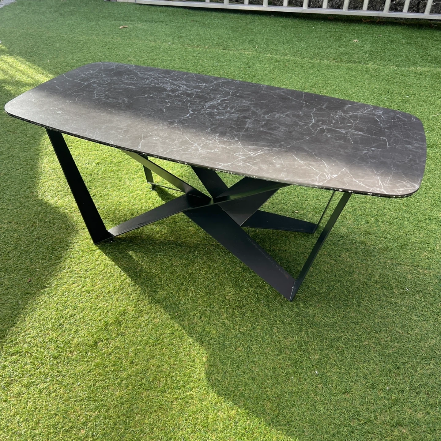 横浜市内であれば配達可能です! 予定が合えば多少離れたエリアでも配達可能です。 ※その他地域はコメントにてご相談くださいませ! リビングテーブル 机 つくえ 角形 スクエア 家具 インテリア 新生活 ファミリー 1人暮らし ワンルーム 幅1m20cm 幅1200mm 居間 ソファサイド モダン スタイリッシュ クール リビングテーブル センターテーブル ローテーブル 角型天板、120×60cm 株式会社TARNY ターニー リビングテーブル MACRON マクロン マクロN120CSRT TN-0187 デザイン性の高いスチール脚が特徴的な、リビング用テーブル。 重厚感のあるブラックカラー・オニキス柄のセラミックと、ユニークな形状の脚がお部屋をスタイリッシュな空間に演出します。 機能性に優れたセラミック天板のテーブル。 セラミック素材の特徴は、キズや摩擦、熱にも強い素材です。 表面硬度が高く、金属などでこすってもキズが付きにくくなっています。 また、汚れや水滴が染み込みにくいので毎日のお手入れも簡単です。 商品仕様 ■サイズ/W1200×D600×H450mm ■天板/セラミック、強化ガラス ■脚部/スチール(BK塗装) 使用に伴う、傷や汚れはあるかと思いますが、まだまだ使用可能です。 写真にてご確認ください ませ。 中古品をご理解の上ご検討下さいませ!