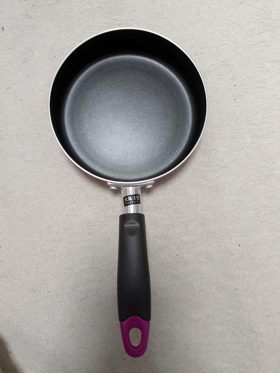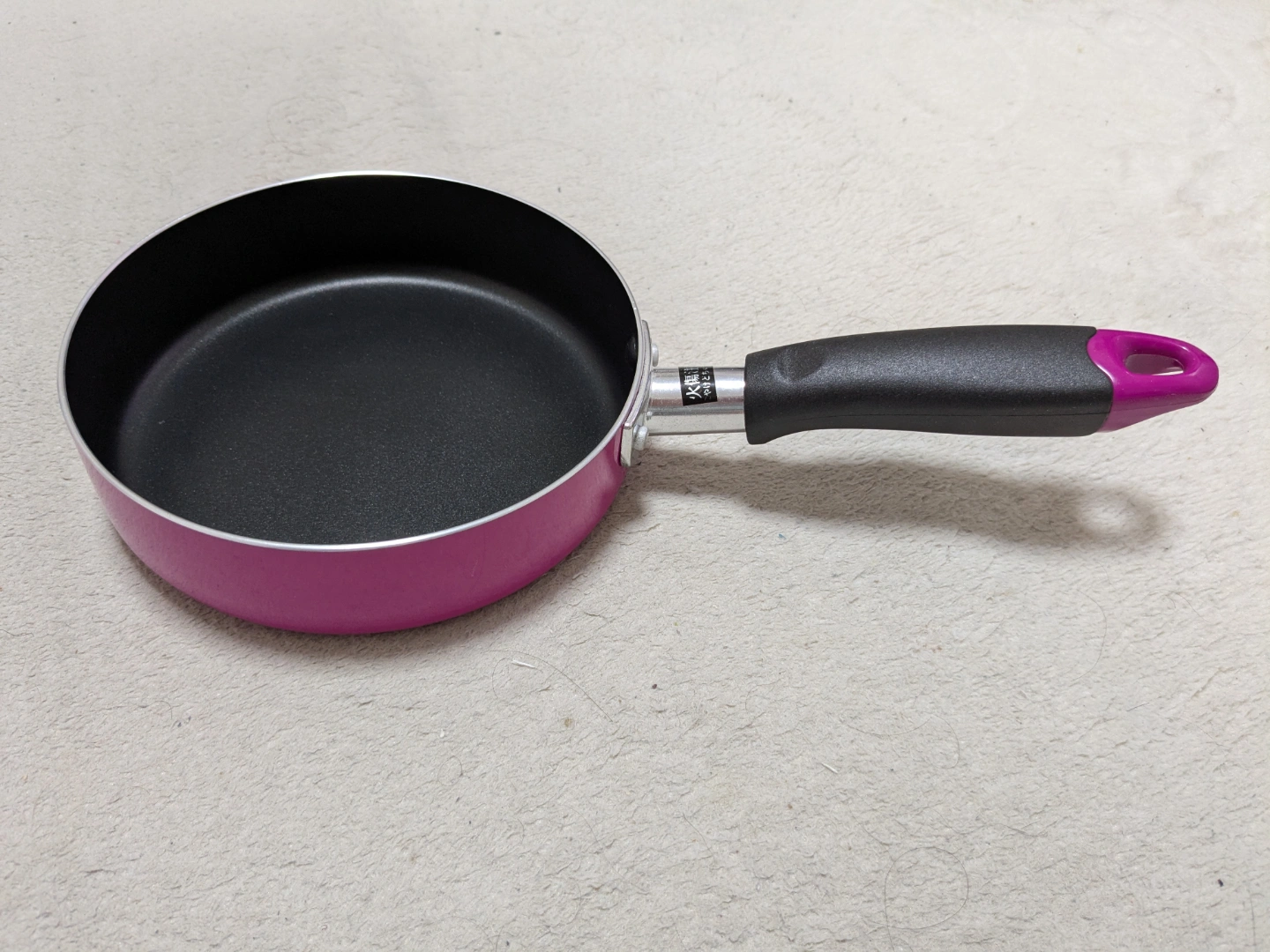 ・未使用品です。 ・オシャレで可愛らしくキレイな色の  小さめなフライパン ・調理には影響皆無だと思いますが、  背面に少しキズがあります。