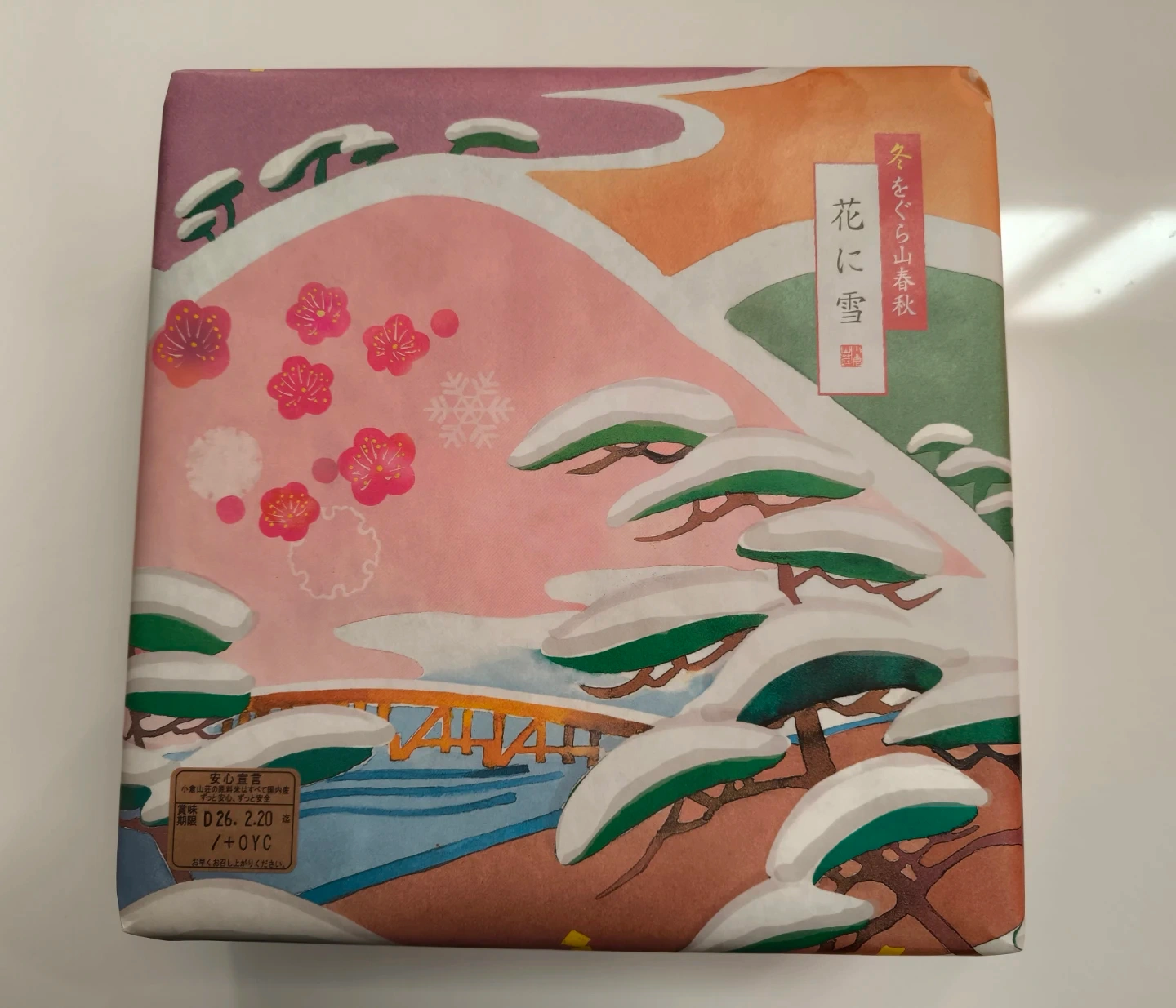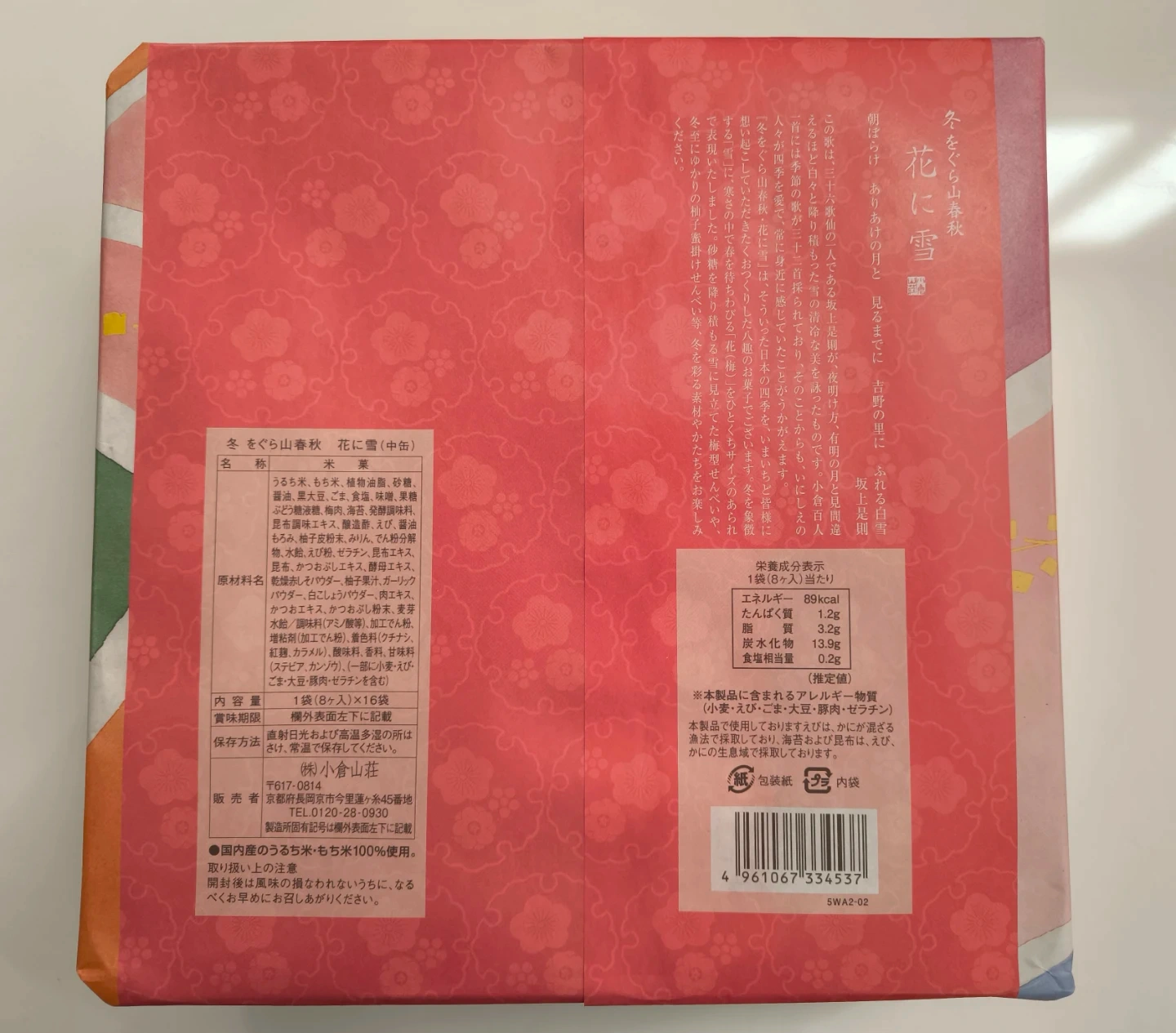 お煎餅の詰め合わせです。 【情報】 商品名:冬をくらむ山春秋 花に雪 賞味期限:2026年2月20日 8種類の一口のお煎餅セットが16袋入っています。 のし紙を外した後が包装紙に残ってます。 中古品であることをご了承ください。