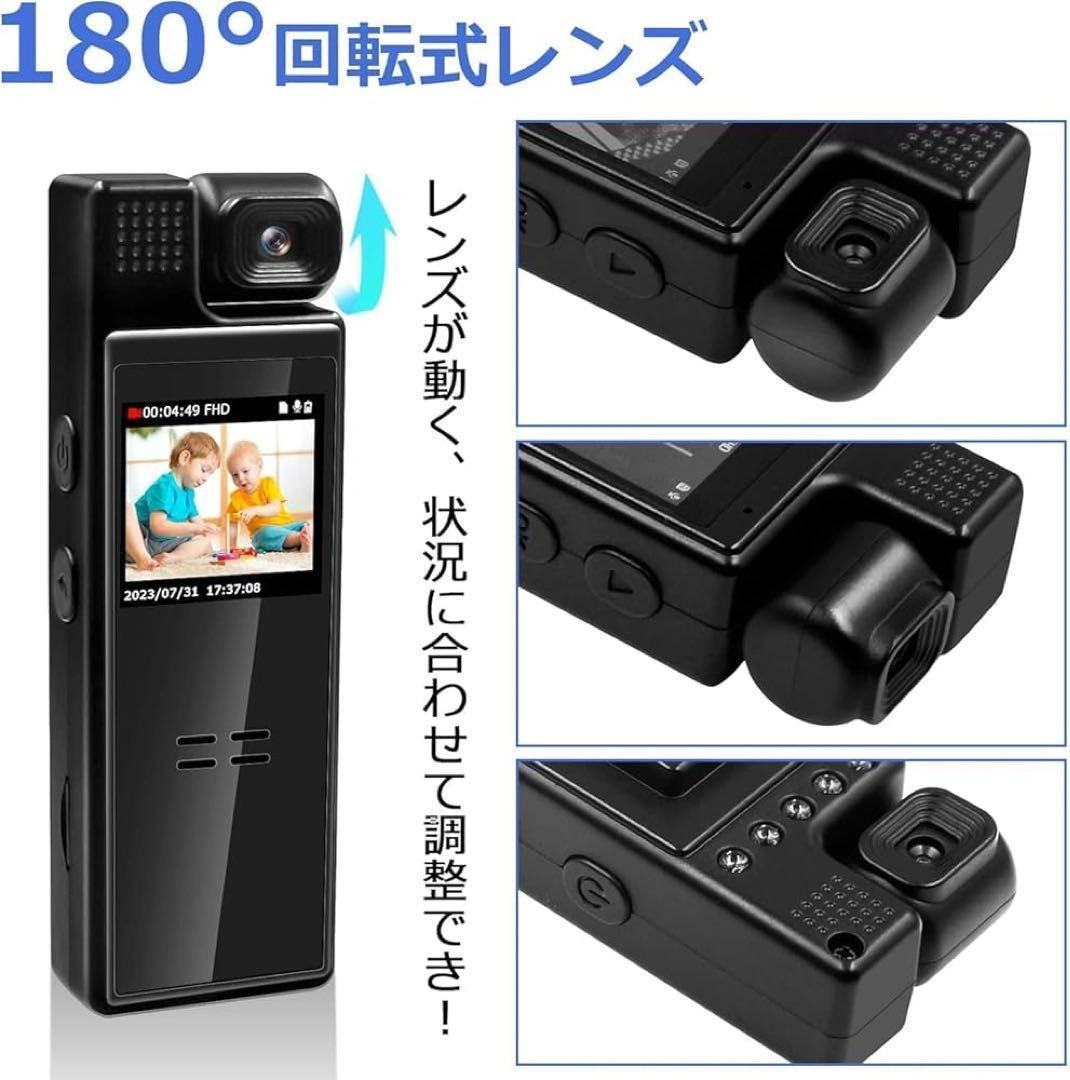 【1.3インチ液晶画面・使用簡単】 ビデオカメラは1.3インチ液晶画面搭載、PCやAPPは必要なく、アプリなど面倒な設定は一切なし、カメラ本体に各データの設置OK!録画モード、写真撮影モード、録音モード、再生モード四つのモードを搭載、再生モードを切り替えて場合、動画や録音や写真を再生/削除できます。 【180°回転式レンズ】 状況に合わせて調整でき、軽量で底部にナット位置があり、自転車、バイク、自動車に設置しても、アクションカメラやドライブレコーダーとして使用も適合です。 【1080P高画質&充電しなが録画】 解像度1080Pの高画質、映像フレームレート30fps影の幅が大きく広がる。内蔵の1200mAhバッテリーは約6時間稼働し、移動電源或いは電源(コンセントなど)と接続して充電しながら録画もできて、会議記録、記者会見、ビジネス商談、授業記録、証拠保留、現場撮影などに使用するのは最適! 【循環録画】 メモリカードがいっぱいになったら、最新のファイルは以前のファイルを上書きし、途中で切れることなく無限に録画続けられます。(256GBのMicro SDカードに対応、SDカードは別売り) 【動体検知録画】 動体検知機能を搭載して、撮影範囲内不審者がご自宅に侵入したら、カメラが自動的に不審者の様子を録画します。ご自宅・オフィスの防犯対策にも最適です。 【超強力LEDライト&夜間でも録画可能】 5個LEDライトを備えており、暗い所にも暗視補正録画でき、赤い線暗視のような効果である。 【単独録音機能】 動画撮影と静止画撮影だけではなく、録音ペンとして使用できるボディカメラには、新技術を採用されて、ボイスレコーダーに単独で使用、7時間連続録音可能、高性能マイク採用でクリアな音声録音を実現!会議記録、ビジネス商談、授業記録などの場合に適しています。 【広く活用&コンパクト&優れた携帯性】 小さくて携帯性に優れ、長時間駆動することができ、大切な瞬間を撮り逃しません。海外旅行にも、家族行事にも持っていき、思い出をすべて映像に残しましょう。また、登山、スキー、ロッククライミング、サイクリング、ハイキング、サーフィン、または車載カメラとして、ほとんどどこでも使用することができます。 ご希望の方はお気軽にご連絡ください。