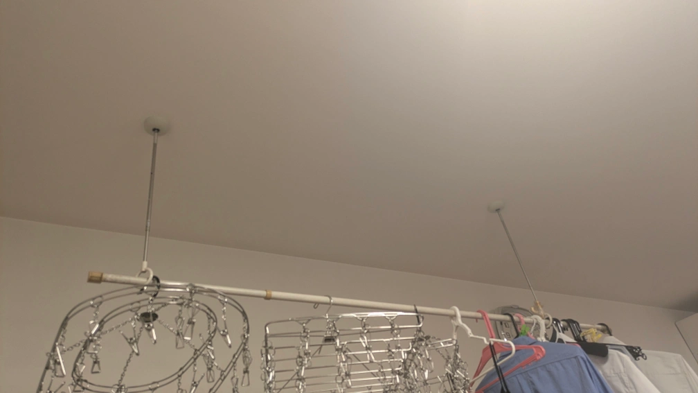 室内に洗濯物を干す時に使用します。不要な場合は、ポールを簡単に抜き取りことができます。 使用中のものを外して、汚れを取りました。 取り付ける場所は、裏に木枠があるところを選んで、落下しないように気をつけてください。 ・内容:画像に写っているものが全てです ・状態:中古品、ネジに使用感あり 中古品であることご了承ください