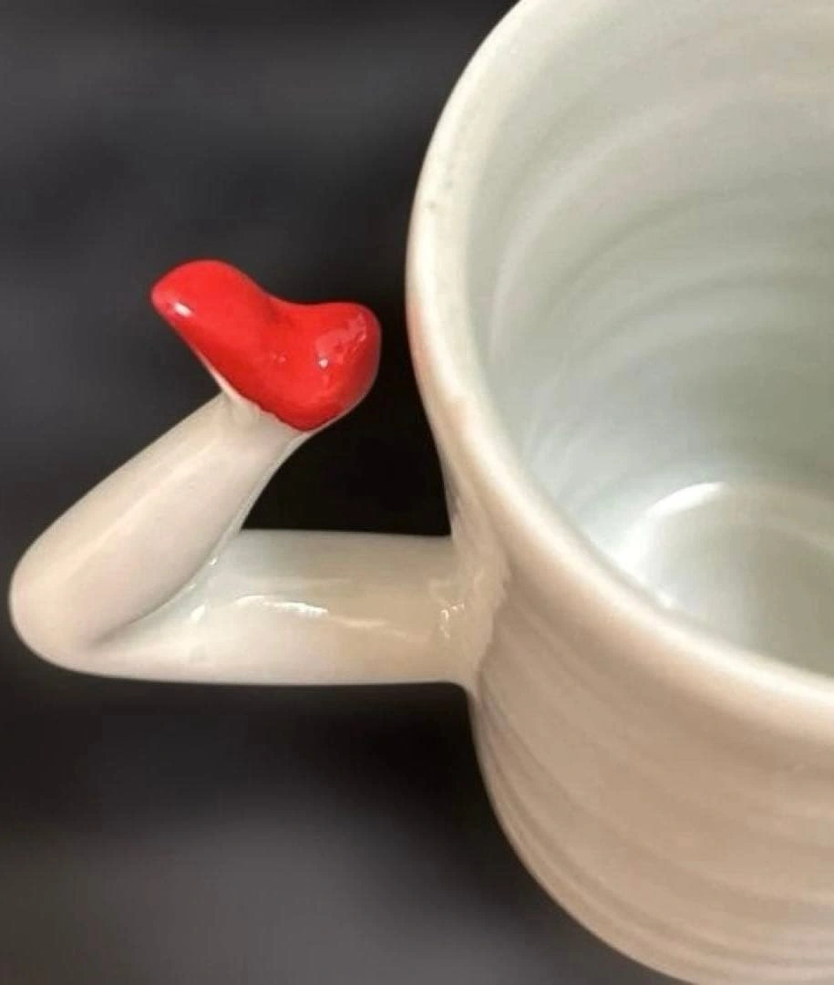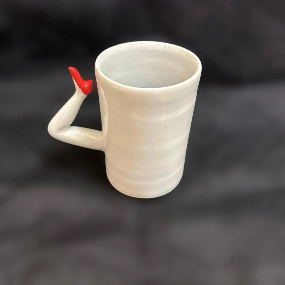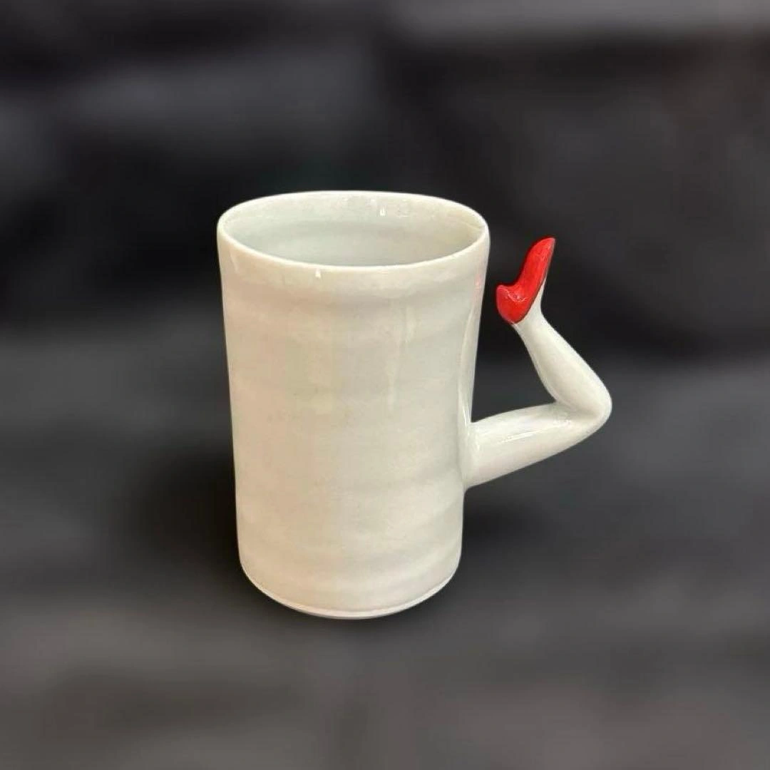 ご覧頂きありがとうございます! 昭和レトロな雰囲気のセラミックマグです。 1960~70年代頃のものと思われます。家族がほぼ未使用のまま自宅保管していた為、ヴィンテージ品としては綺麗な状態です。 赤いハイヒールを履いた脚がハンドルになっており、底面には手書きのサインが入っております。(サインについては詳細不明) マグカップとしてはもちろん、ペン立てやオブジェとしても良いかと思います。 サイズ 口径 約6㎝ 高さ 約9.2㎝ 重さ 約 180g キャンセル、返品、商品お受け取り後のクレームなどは不可でご了承頂けるようお願い致します。 ご希望の方はお気軽にご連絡ください。 #ヴィンテージ #昭和レトロ #レトロポップ #ペン立て #マグカップ #カップ #おもしろ食器 #シュールなヴィンテージ品 #シュールレアリスム