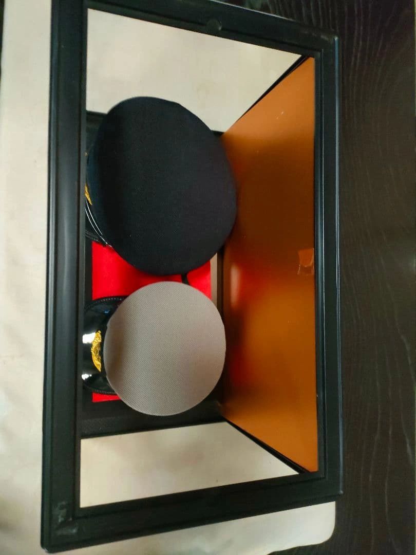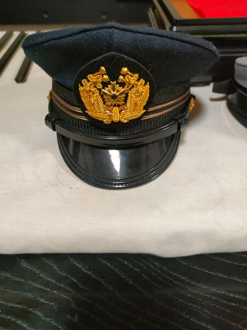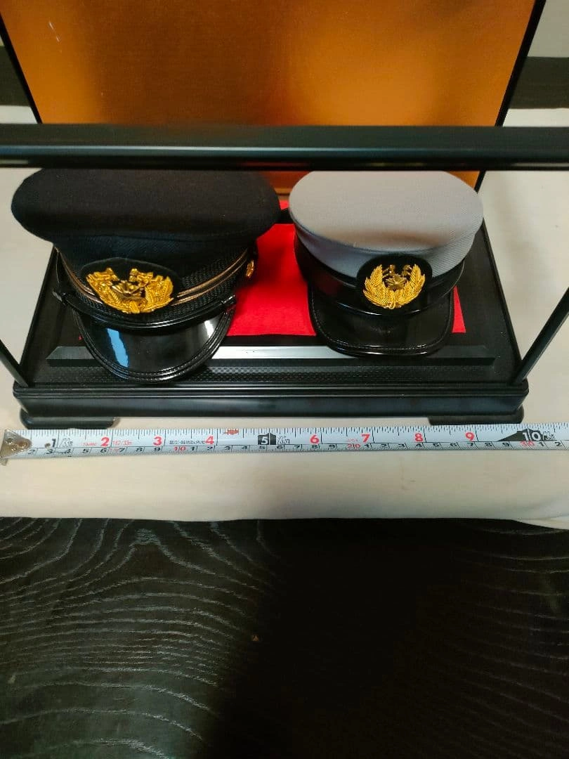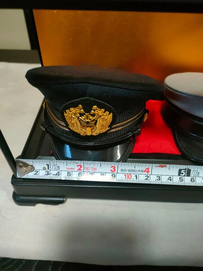 警察官のミニチュア帽子セット、コレクター向け。 帽子サイズ 直径約10㎝ 高さ約5㎝ ※組み立て式ケースは写真 の通り分解して梱包いたします。 ※素人保管にご理解の上、ご購入いただけると幸いです。