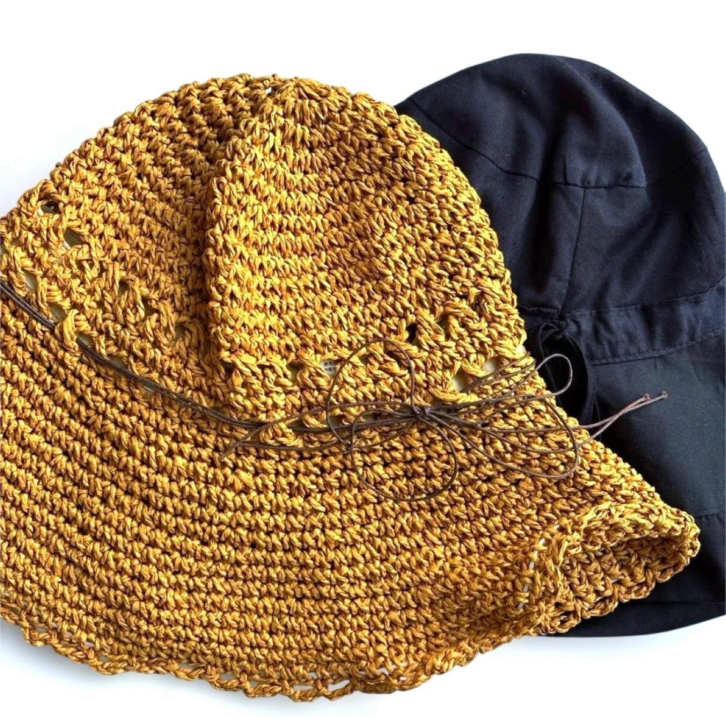 帽子の2点セットです。 紫外線防止、日焼け対策にいかがですか? レジャーやアウトドア、旅行にもオススメです♪ とても可愛くて購入したものの似合わず… 試着程度で保管していました。 メイク後に被ってしまったため、内側に汚れが見えます。黒い帽子は上に物を置いてしまったのか汚れが見え、つばの部分に折り目、小さな毛玉が付いています。また最初からだと思いますが、リボンにほつれが見えます。 中古品となります。 神経質な方はご遠慮ください。 上記ご理解ある方のみお手続きお願い致します。 購入後のクレーム、返金は一切致しかねます。 気になる方はご遠慮ください。 ・カラー:黒、麦わら風 ・素材:麦わら風(本体:ペーパー100%) ・状態:使用感少なめ
