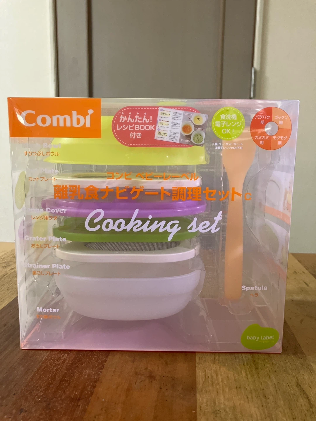 コンビの調理セットです。 ・ブランド:コンビ ・ベビーレーベル ・調理セット ・付属品:レシピBOOK、スパチュラ ・状態:使用感少なめ 中古品であることをご了承ください。 一度開封したものの、一度も使わずにこの時期が終わりました。