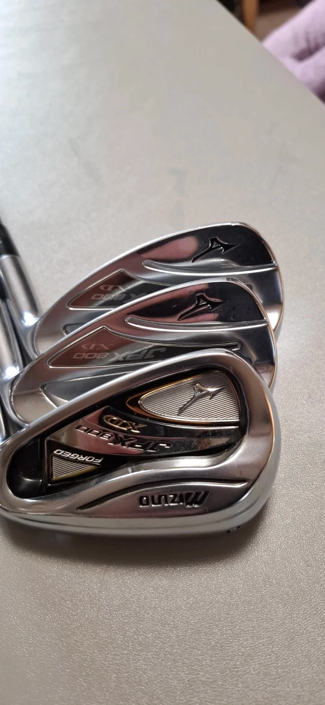 ご覧いただきありがとうございます。 ミズノ スペシャルオーダー(カスタム)クラブ の仕様書付き JPX 800XD アイアンセット になります。 すべてミズノカスタムセンター製作の 正規スペシャルオーダー品 です。 ■モデル MIZUNO JPX 800XD アイアン(右利き用) やさしく打てる人気モデルで、初心者〜中級者の方に特に扱いやすいシリーズです。 ■シャフト N.S.PRO AD-75(ノーマルカラー / 硬さ:R) ・軽量スチールのレギュラー ・振り抜きやすく、やさしく飛ばしやすい組み合わせです。 ■グリップ Golf Pride DD2 ブルー(バックライン有 / 下巻き2枚) ・鮮やかなブルーカラー ・写真の通り、状態良好です。 ■カスタムスペック 長さ・ロフト角・ライ角・刻印・色入れなど すべてミズノ規格どおり です。 余計な改造や調整は一切ありません。 ※ S(SW)のみバランスが D3 ウェッジでは一般的な調整で、使用上の問題はありません。 ■セット内容(8本) 5I / 6I / 7I / 8I / 9I / PW / GW / SW (5番〜9番、ピッチング、ギャップ、サンド) ■購入店舗 ヴィクトリア川崎野川店(2011年) ミズノのカスタムオーダー品のため、仕上がり品質はとても良いです。 ※ カスタムスペック表(写真)もお渡し可能 です。 ■状態 中古品のため使用に伴う小キズはありますが、 性能に影響のあるダメージはなく、まだまだ気持ちよくお使いいただけます。 中古品と言う見方で個人差はありますので神経質の方はご遠慮下さいませ。 引取希望 纏めて購入してくれる方は格安で相談させていただきます。 ■コメント ・ミズノ純正カスタムのため安心してお使いいただけます。 ・扱いやすく、これからゴルフを始める方にも最適。 ・スペック表があるため、購入後の調整やフィッティングにも便利です。