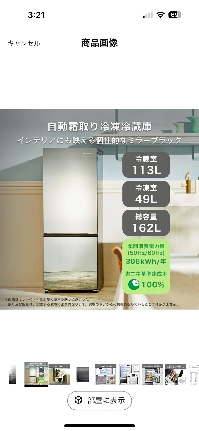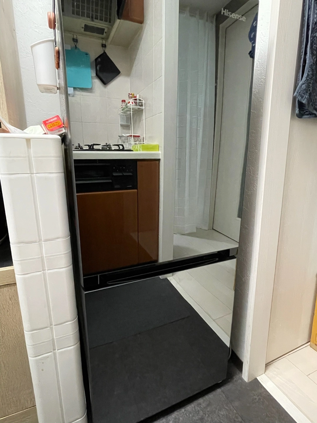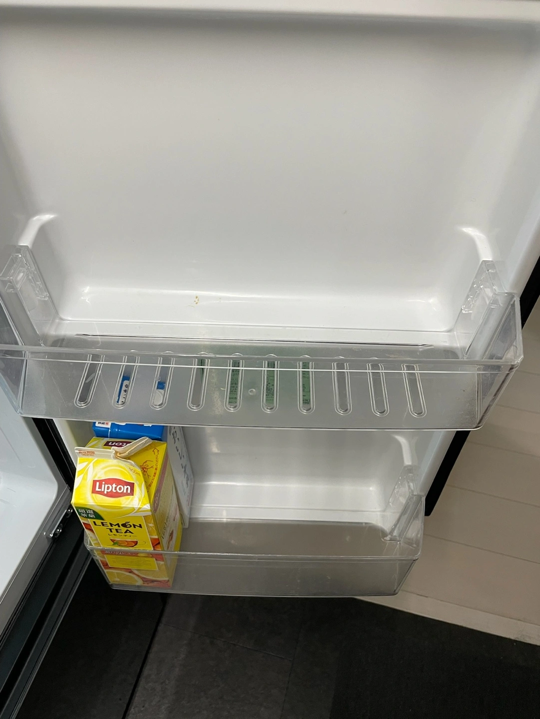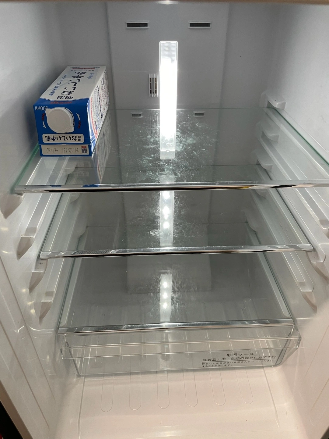 鏡面仕上げが美しい、インテリア性の高い冷凍庫付き冷蔵庫です。 写真用に物をどけています、ガラス天板の置き跡はダイソーなどのダイヤモンド磨きスポンジやクエン酸スプレーなどで磨いていただければ綺麗になります。 1〜2人用に最適です。 ぜひご連絡ください。 商品の寸法 58.3奥行き x 48.1幅 x 127.9高さ cm 容量 162 L ドア数 2 冷凍庫の容量 49 リットル 棚数 3 商品の重量 44 キログラム 生鮮食品の容量 113 L ドアの開き方 右開き