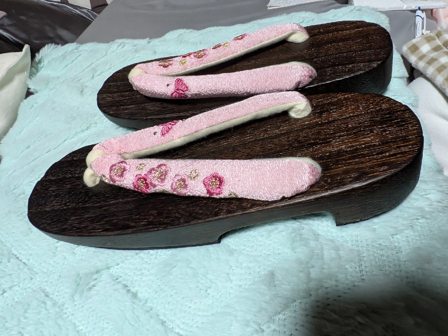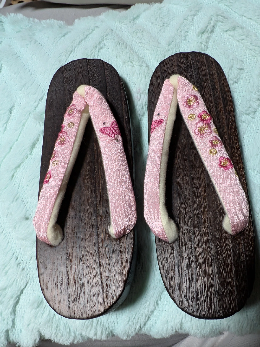 手焼き桐下駄です ・サイズ:23cm~24.5cm ・色:茶色、ピンクの花柄 ・状態:新品未使用品 中古品であることご了承ください この下駄は、手焼きという日本伝来の技法で桐木を焼きそれを木綿の布でみがいて、自然の木目のおもしろさを表現しております😊これにより墨が残っております