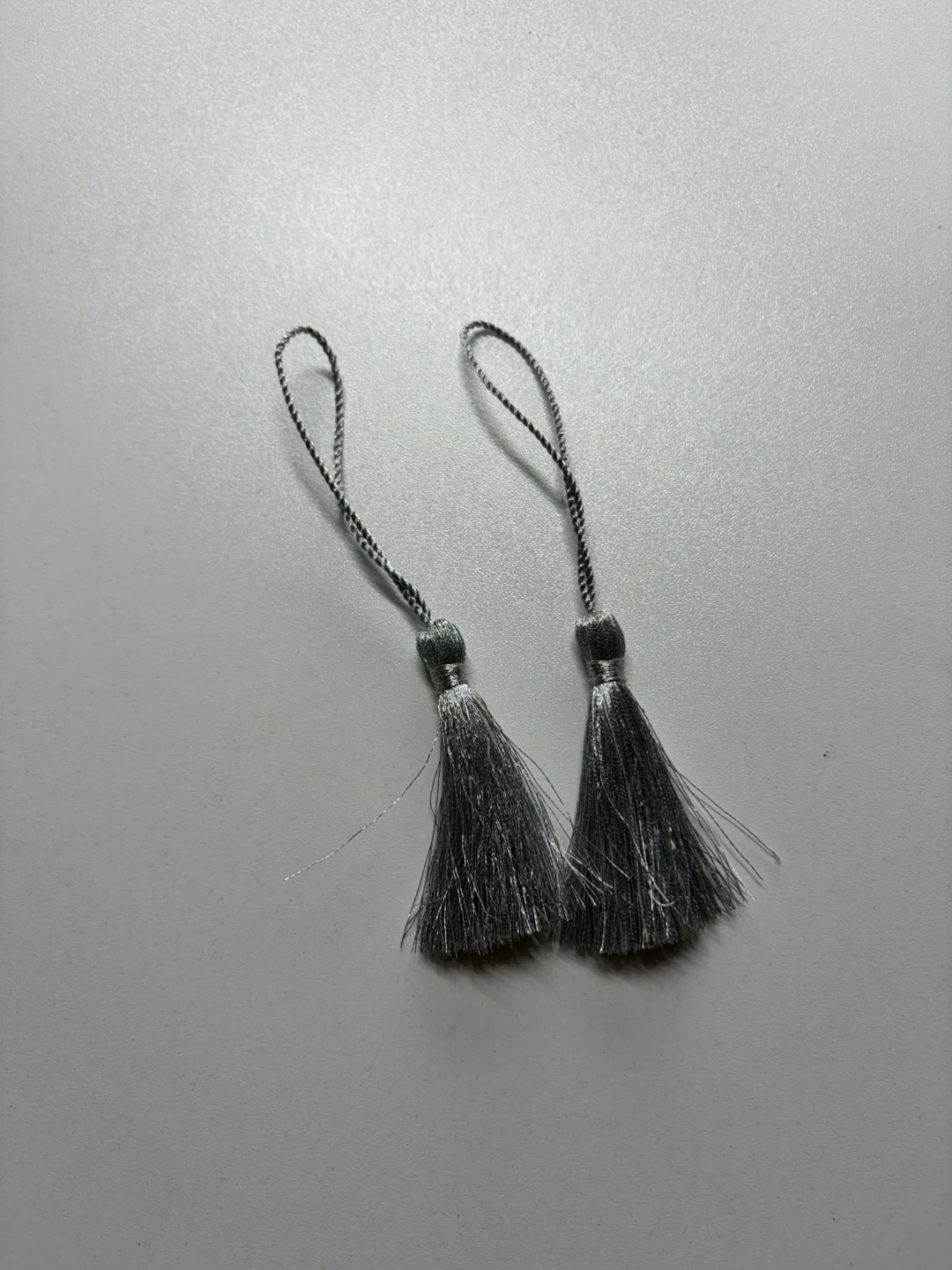 タッセル2個セット ・カラー:シルバー ・状態:未使用に近い ・サイズ:全長11センチ× 2 ご不明点があればお気軽にご連絡ください。 中古品であることご了承ください 年内中、お早めの時期でご都合が合う方、マイバックご持参で来ていただける方、指定場所に取りに 来ていただける方限定。複数のお申し込み大歓迎です。 先着順です。お返事遅い方、こちらの質問にご回答いただけない方は、次の方にお譲りする場合もございますのでご了承ください。 ご不明点があればお気軽にご連絡ください。