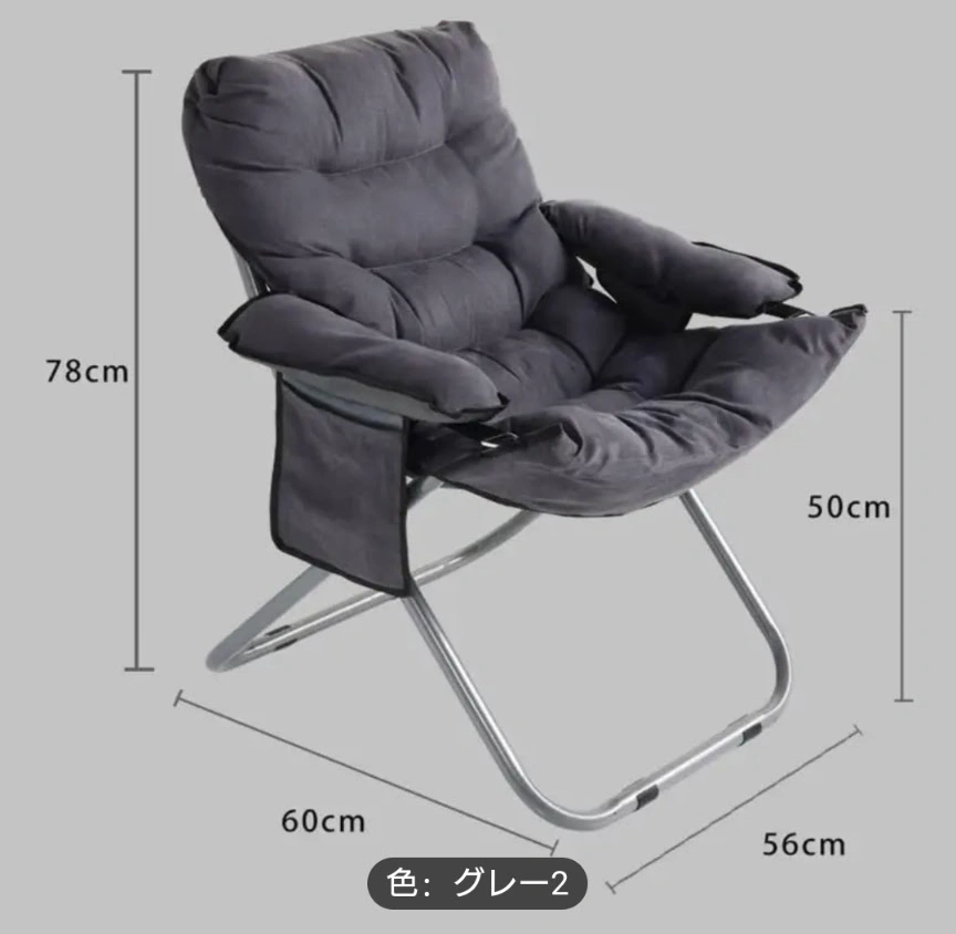 アウトドア用の折りたたみチェアです ・色:ネイビー ・サイズ:高さ78cm、幅60cm、奥行き56cm、座面高さ50cm ・折りたたみ可能 半年ほど前に入手したものです。 一度だけ屋内で組み立てて座ってみました。 元定価11000円程 肘置きの片側にポケットがついています。 重量は片手で持てるくらいなので、軽いと思います。(※適当です。) 有効利用してくださる方がいればお譲りしたいと思います。 一度は人の手に渡った物です。 そのことを踏まえ、理解いただいたうえでお願いいたします。 細かなことが気になる方はお控えくださいませ。 自己紹介もご覧ください。 簡易にビニールをかけてお渡しします。 ご不明点があればお気軽にご連絡ください