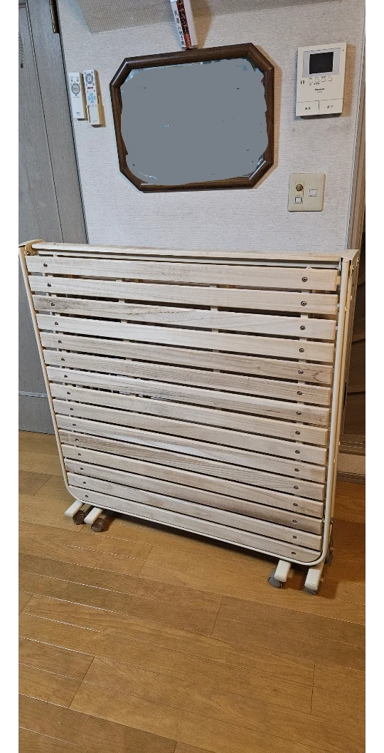 木製の 折りたたみ す のこベッド シングルサイズ ・木製 ・折りたたみ可能 ・全体的に使用感あり ・すのこは しっかりしています 2年くらい 使用していました。 自宅玄関先までは 出しますが そこからは運んでくださる方へ お譲りいたします。 自宅住所等、お取引が決まった後に お知らせしたいと思います。 世田谷区つみき公園近くとなります。 あと、すみません。 現状 このままでのお引渡しとなります。 特に包んだりなど しませんので ごめんなさい。 中古品であることをご了承ください。 よろしくお願いいたします。