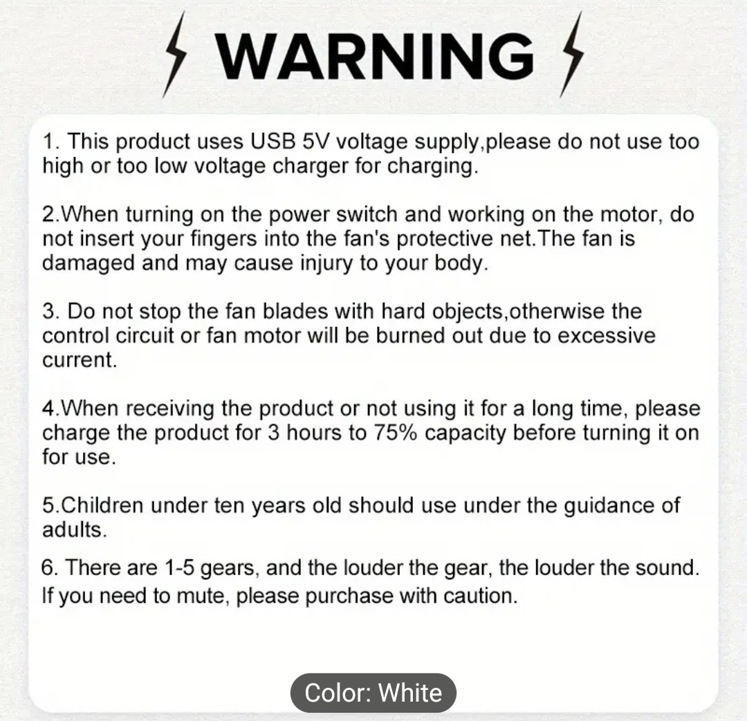 あたたかさ【情報】 型番:N607 種類:折り畳み式扇風機 カラー:ホワイト 素材:ABS 充電ポート:Type-C サイズ:6cm x 4cm x 17cm