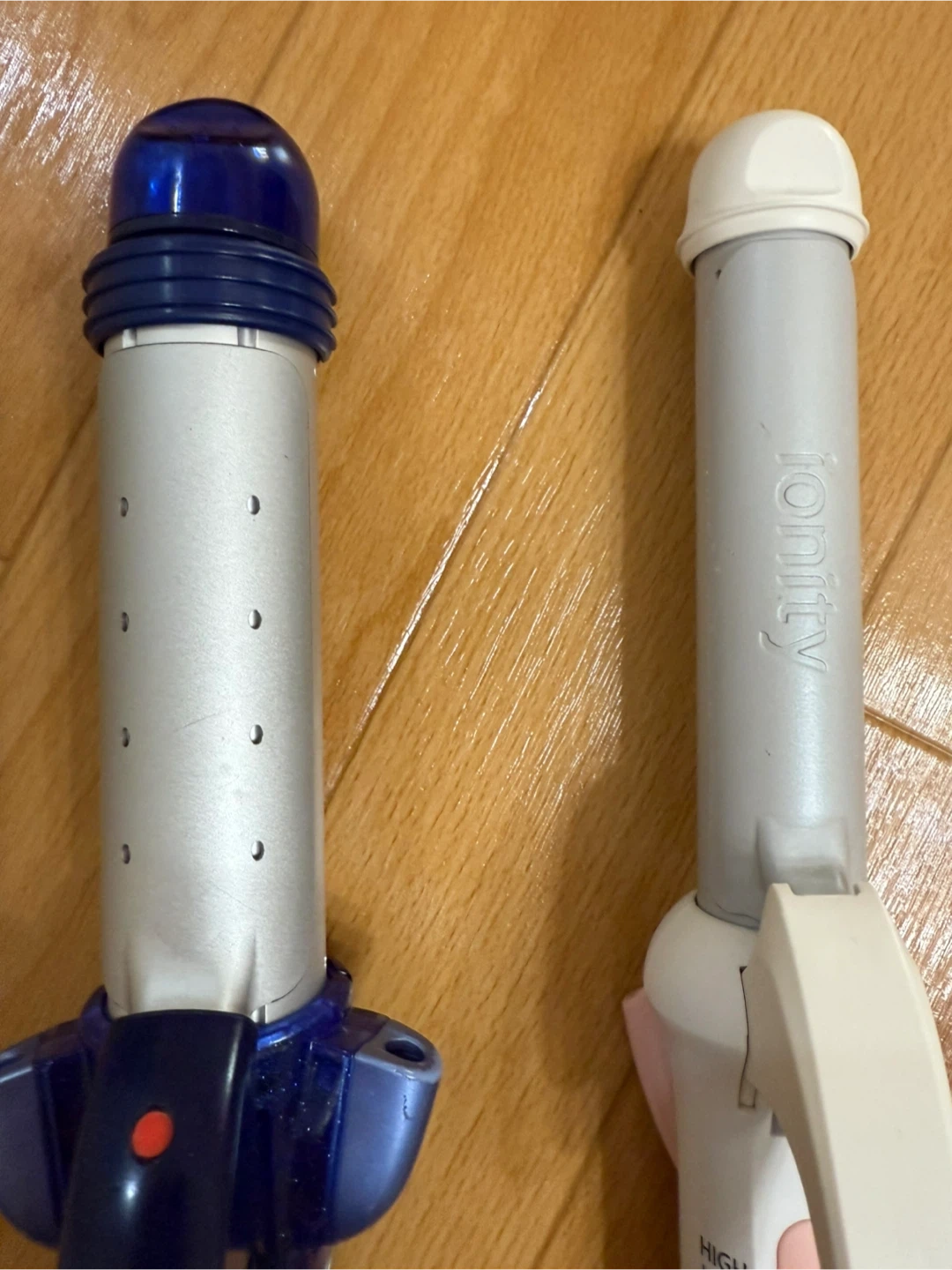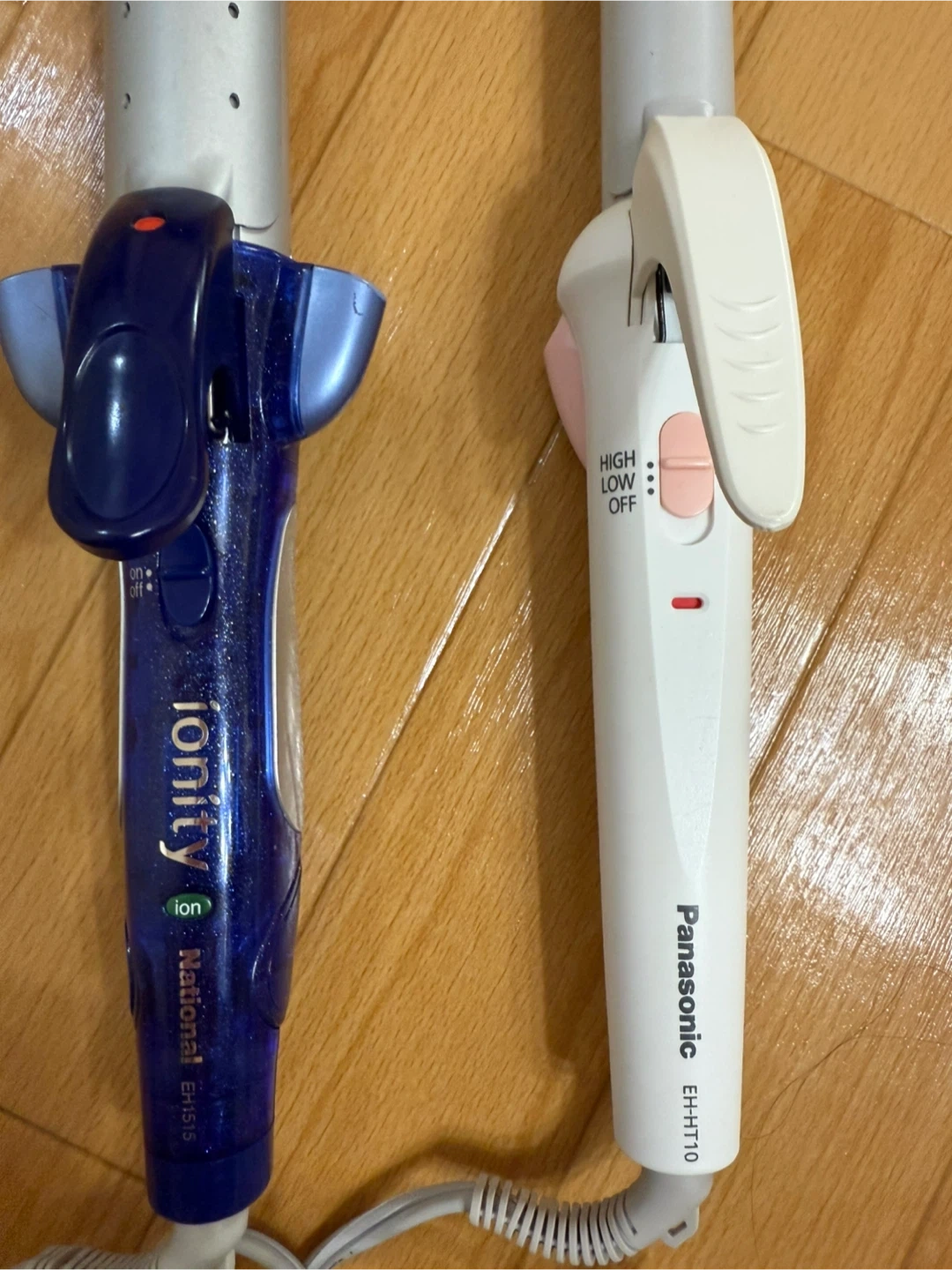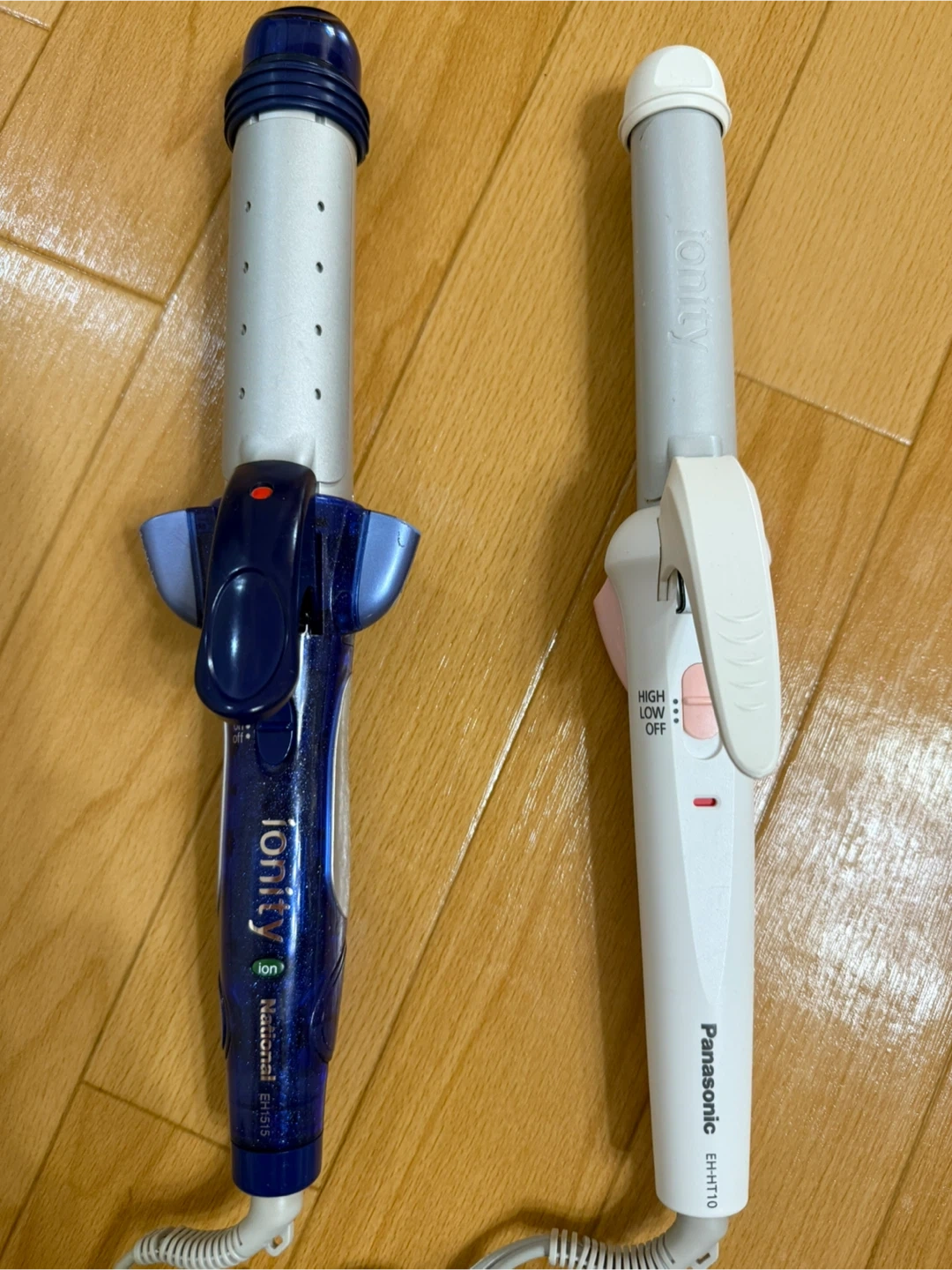 持ち運び可能ヘアーブラシアイロンと、32cmと26cmのカールアイロンです。 まだまだ使用可能ですが、新しい商品を購入したためにお譲りします。 【状態】 ヘアブラシアイロンは2、3回しか使ってないんですが、後ろのロゴが消えかかってます。 カールアイロン2台は購入してしばらく経ってますが、目立った傷はないです。 32cmの青いイオニティの方は、ストレートとカールもできるアイロンです。 3つとも作動確認してしっかり使用可能です。 中古品であることをご了承ください。 取りに来れる方でお譲りいたします。