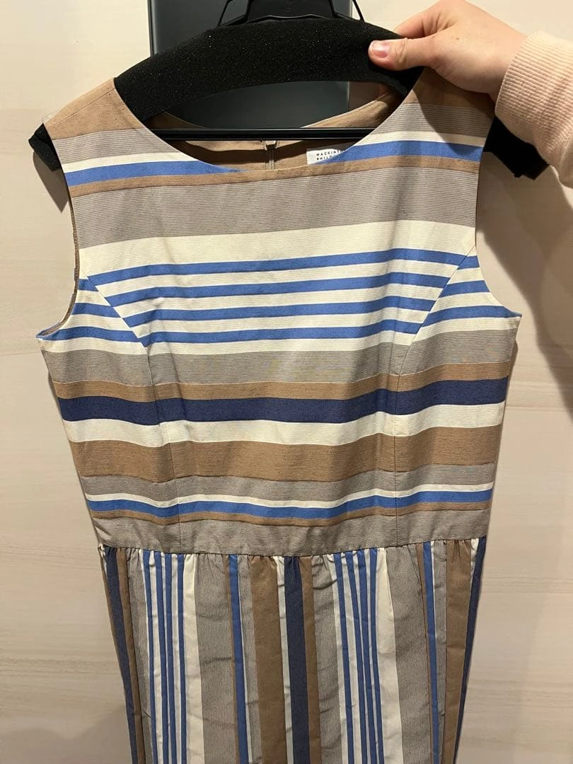 数回着用Macintoshストライプ ノースリーブ 膝丈ワンピース38