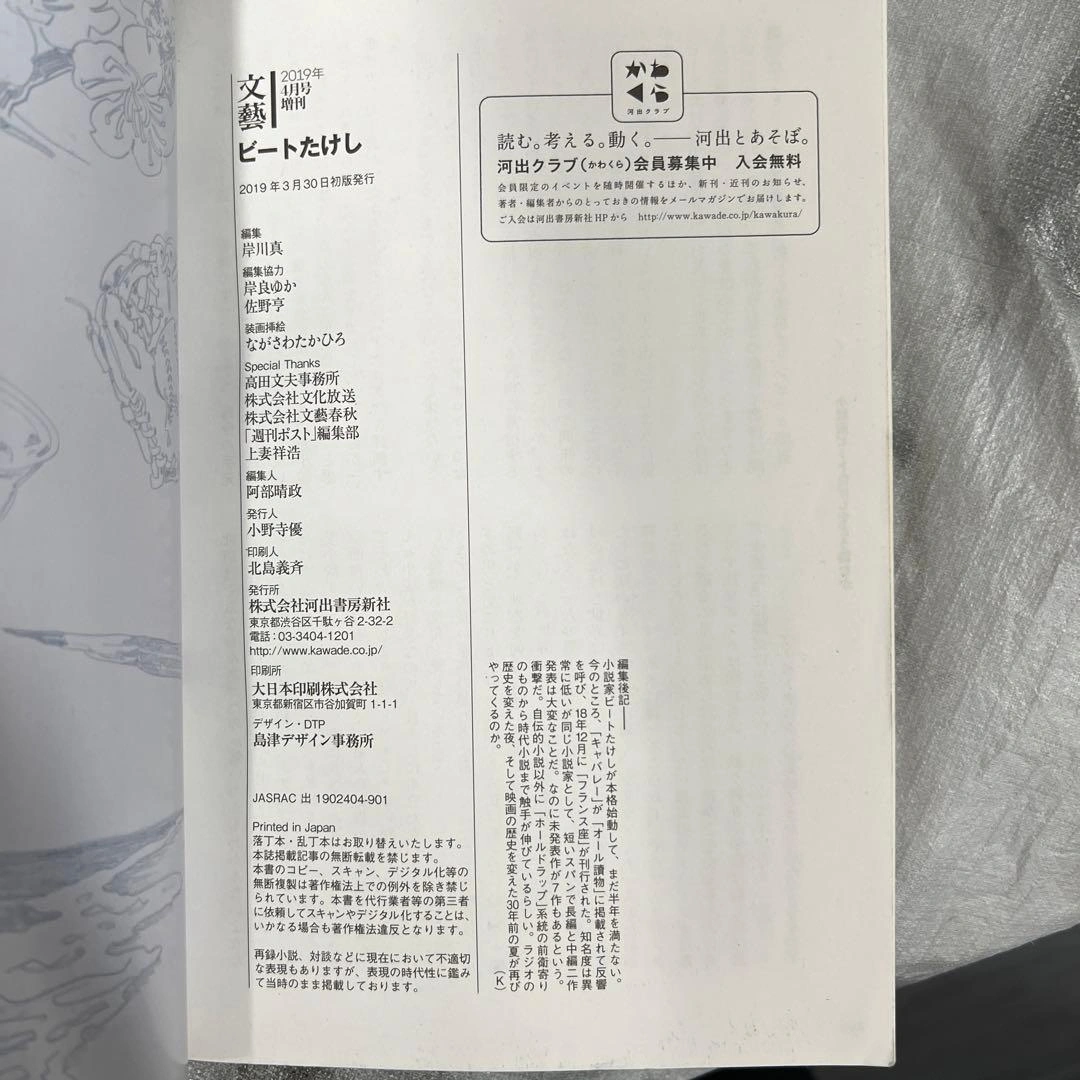#横尾忠則 #大竹まこと #太田光 #菊池成孔 #中原昌也 #町屋良平 #施川ユウキ #王谷晶 #増島拓哉 #井上ひさし #中上健次 #蓮實重彦 #伊集院静 #黒沢清 #滝本誠 #文藝 #北野武 #ビートたけし #壇蜜#前田隣#井上雅義#樫原辰郎# 2019年発行のものなので多少の劣化はありますが読む分には問題ありません。 ご希望の方はお気軽にご連絡ください。