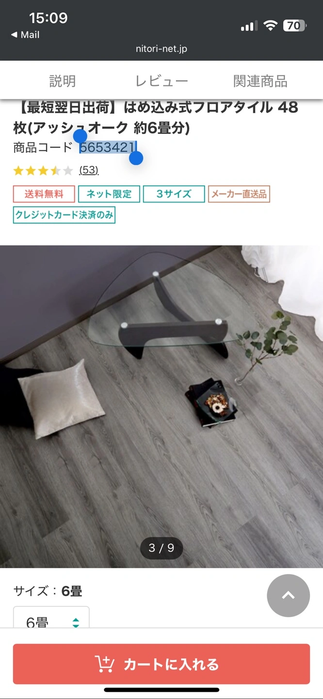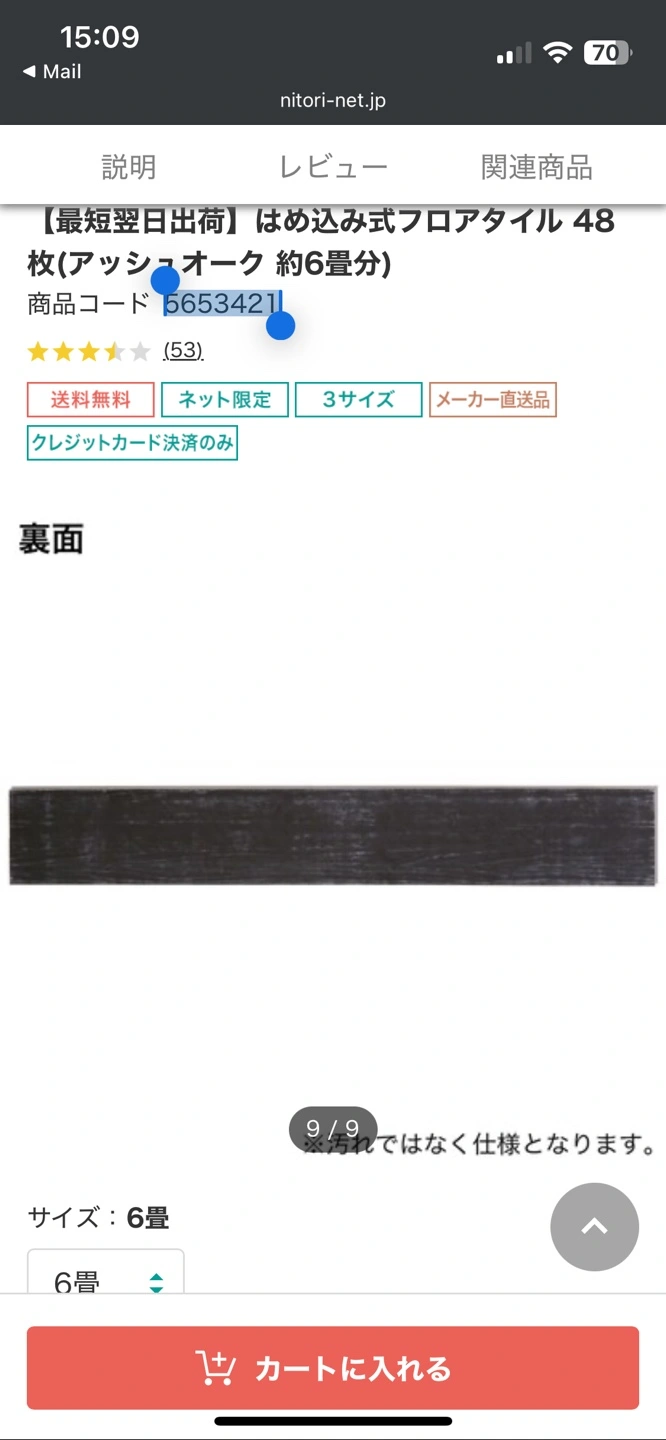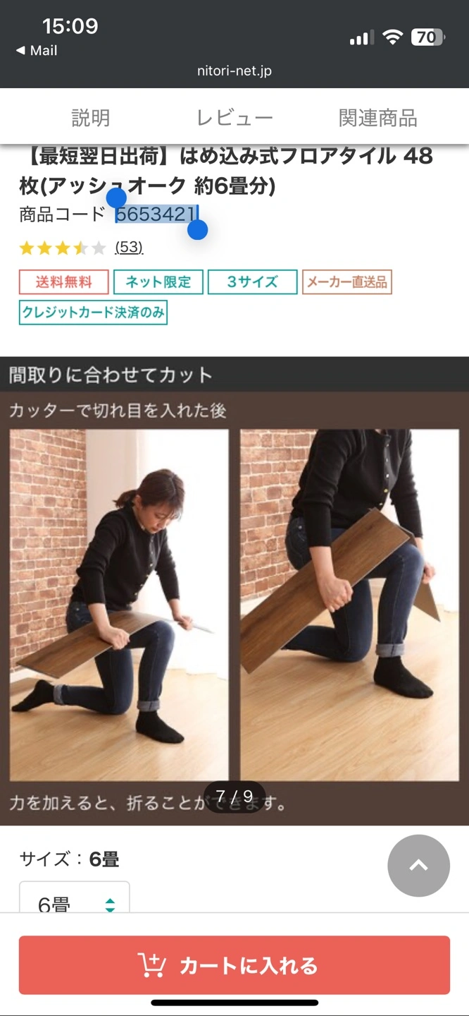 ※一枚目の写真はお渡し予定の箱を開封して撮影したものではありませんのでご安心ください。 ニトリネットで 6畳のものを購入したのですが、 4箱に分かれて来たため、 こちらの1箱は まるまる残ってしまったため出品いたします。 未開封、未使用のものです。 サイズ : 【1箱12枚入り】1枚:幅122×奥行18cm 素材 : PVC 重量 1枚当たり:約1.7kg ⭐️接着剤などを使わない、はめ込むだけの簡単施工なので賃貸住宅にも最適です。 ⭐️傷に強いので土足でもお使い頂けます。 ⭐️床暖・ホットカーペット対応、防水仕様、抗菌加工 壁が白なのですが、とてもいい感じに仕上がりました! 公式ニトリネットで検索していただくと 出て来ますが、カッターで切り込み数回入れ山折におると折れます。 ※ 1箱20.4キロほどになるため 車の方、もしくは、2人で徒歩で持ち帰れる距離の方がいいかと思います。 持ち帰りの際気をつけていただければと思います。