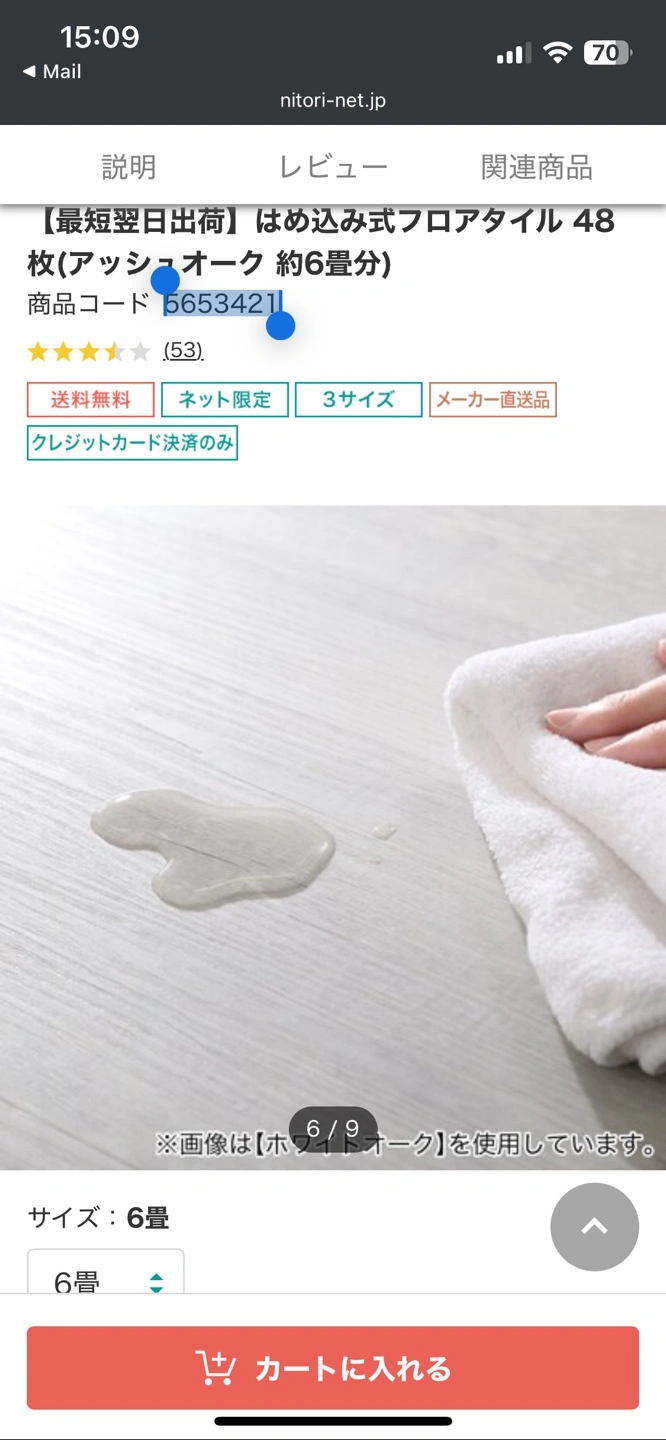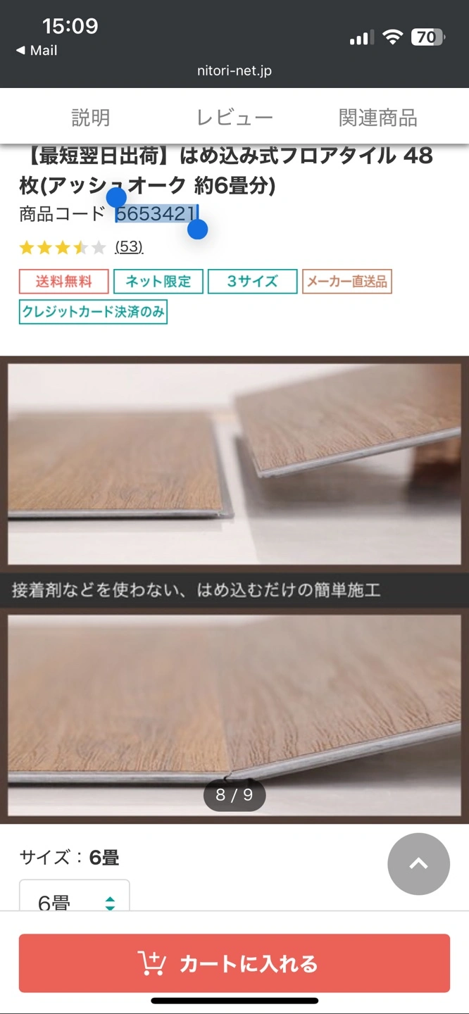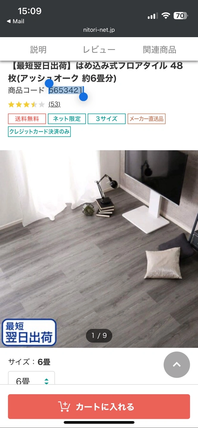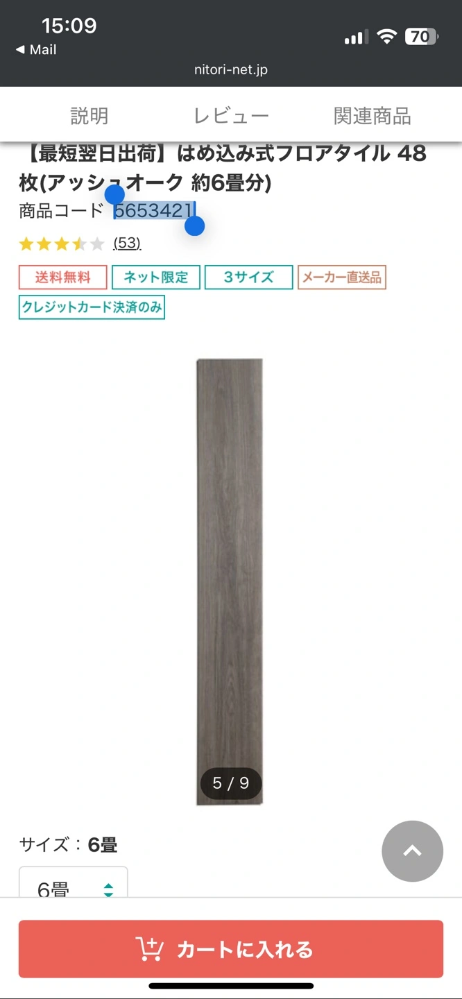 ※一枚目の写真はお渡し予定の箱を開封して撮影したものではありませんのでご安心ください。 ニトリネットで 6畳のものを購入したのですが、 4箱に分かれて来たため、 こちらの1箱は まるまる残ってしまったため出品いたします。 未開封、未使用のものです。 サイズ : 【1箱12枚入り】1枚:幅122×奥行18cm 素材 : PVC 重量 1枚当たり:約1.7kg ⭐️接着剤などを使わない、はめ込むだけの簡単施工なので賃貸住宅にも最適です。 ⭐️傷に強いので土足でもお使い頂けます。 ⭐️床暖・ホットカーペット対応、防水仕様、抗菌加工 壁が白なのですが、とてもいい感じに仕上がりました! 公式ニトリネットで検索していただくと 出て来ますが、カッターで切り込み数回入れ山折におると折れます。 ※ 1箱20.4キロほどになるため 車の方、もしくは、2人で徒歩で持ち帰れる距離の方がいいかと思います。 持ち帰りの際気をつけていただければと思います。