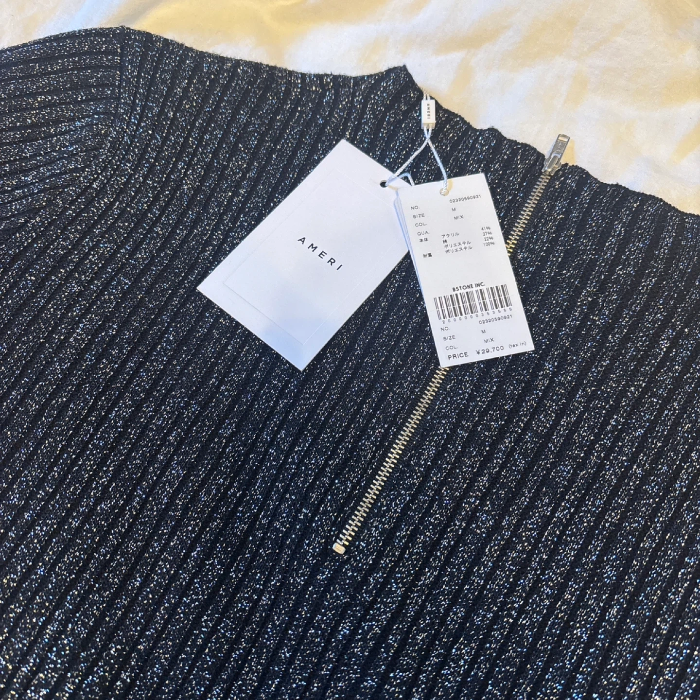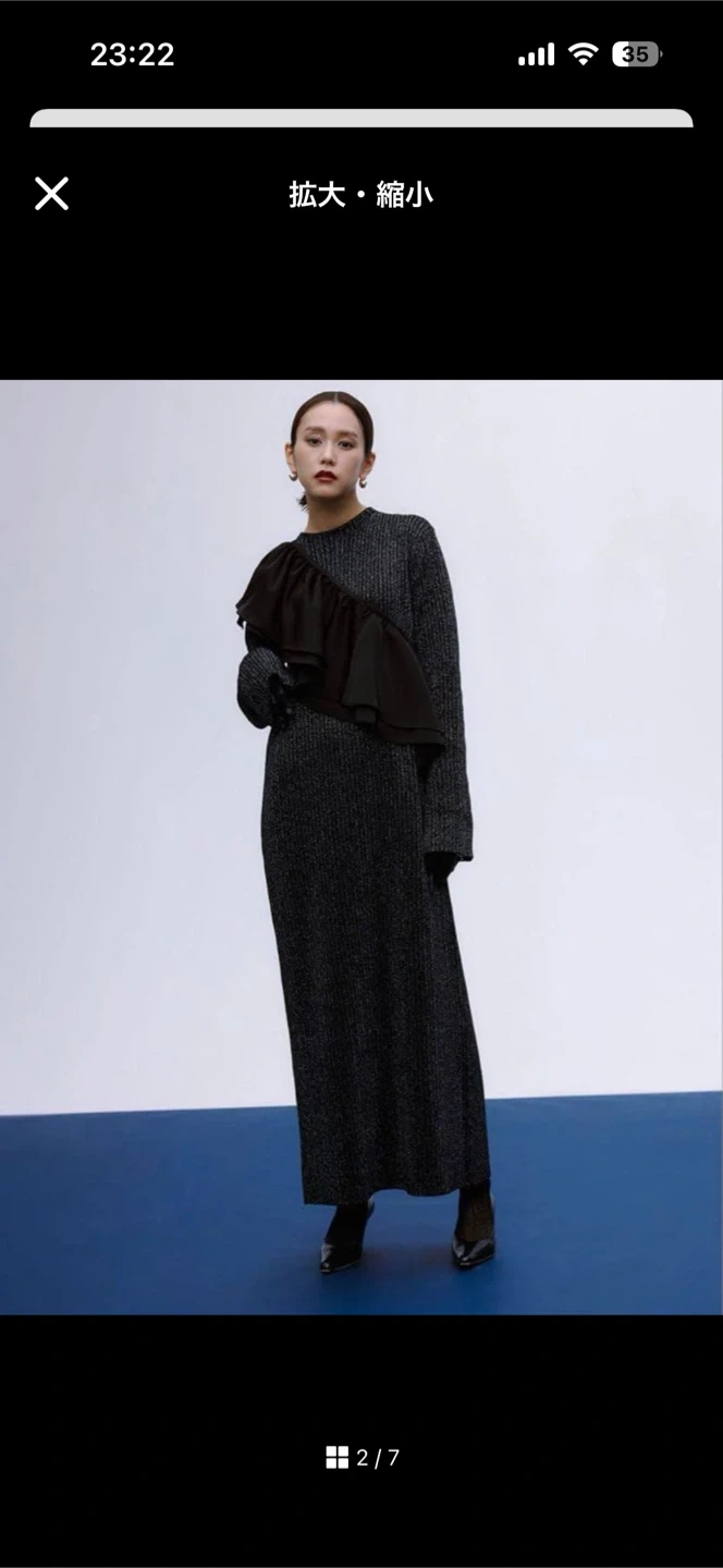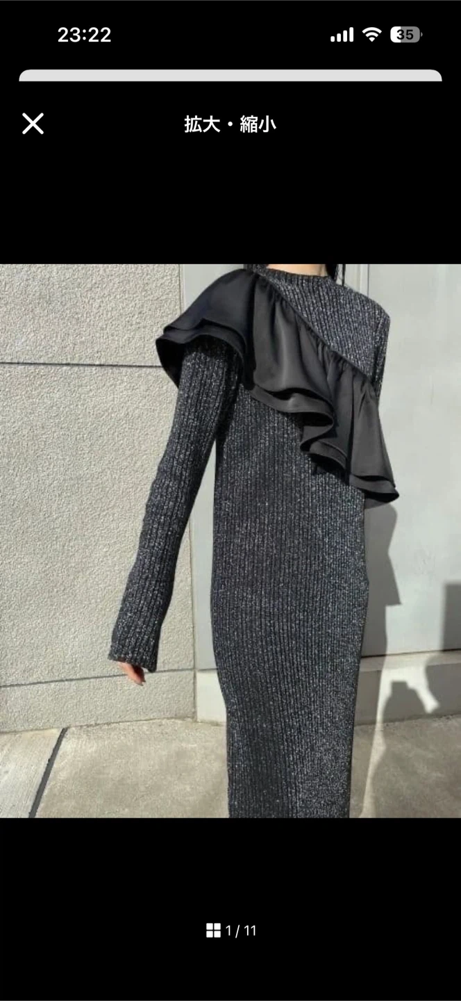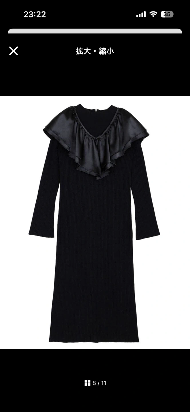 ご覧頂きありがとうございます✨ - ブランド: AMERI VINTAGE - 商品: MIREI KIRITANI × AMERI RAFFLE SET KNIT DRESS - 色: Black - スタイル: オケージョンドレス、ロングワンピース -サイズ: Mサイズ -購入先: 公式サイト -購入価格: 2,9700円 【実寸サイズ】 (リブニットドレス) 着丈:129cm 肩幅:40cm 袖丈:64cm バスト:46cm 【付け襟】 着丈(肩掛け):43cm 着丈(斜め掛け):35cm(ストラップ調節可能) 《商品説明》 ✴︎MIREI KIRITANIx AMERIコラボアイテム!! Iラインのリブニットドレスにラッフルの付け襟がセットになったアイテム。 ニットドレスはインナーが響かない程度の厚みの編地を使用。細身なシルエットながらも身体のラインを拾いにくいのが嬉しいポイントです。 ワイドスリーブで、さらに二の腕周りの着痩せ効果も期待できます。ラッフルの付け襟はサテン生地で甘すぎず、上品な印象にしてくれます。 ミックスのみ付け襟の素材が異なり、落ち着いた雰囲気に。 襟は、肩に掛けて着用する方法の他に、斜めにしての着用もおすすめ。調節紐が付いている方を肩に掛けてご着用下さい。 一目惚れしオンラインで購入しましたが、着る機会がなく、一度も着用しないまま大事に保管しておりました。 状態、とても良いです✨ クリスマスシーズンにもぴったりで、冬のオケージョンドレスとしてもとても映えると思います✨ (ラメ感がある為写真や夜でも映えます✴︎) とても綺麗なお品ですが、自宅保管の為、ご理解の上ご購入頂きますようお願い致します。