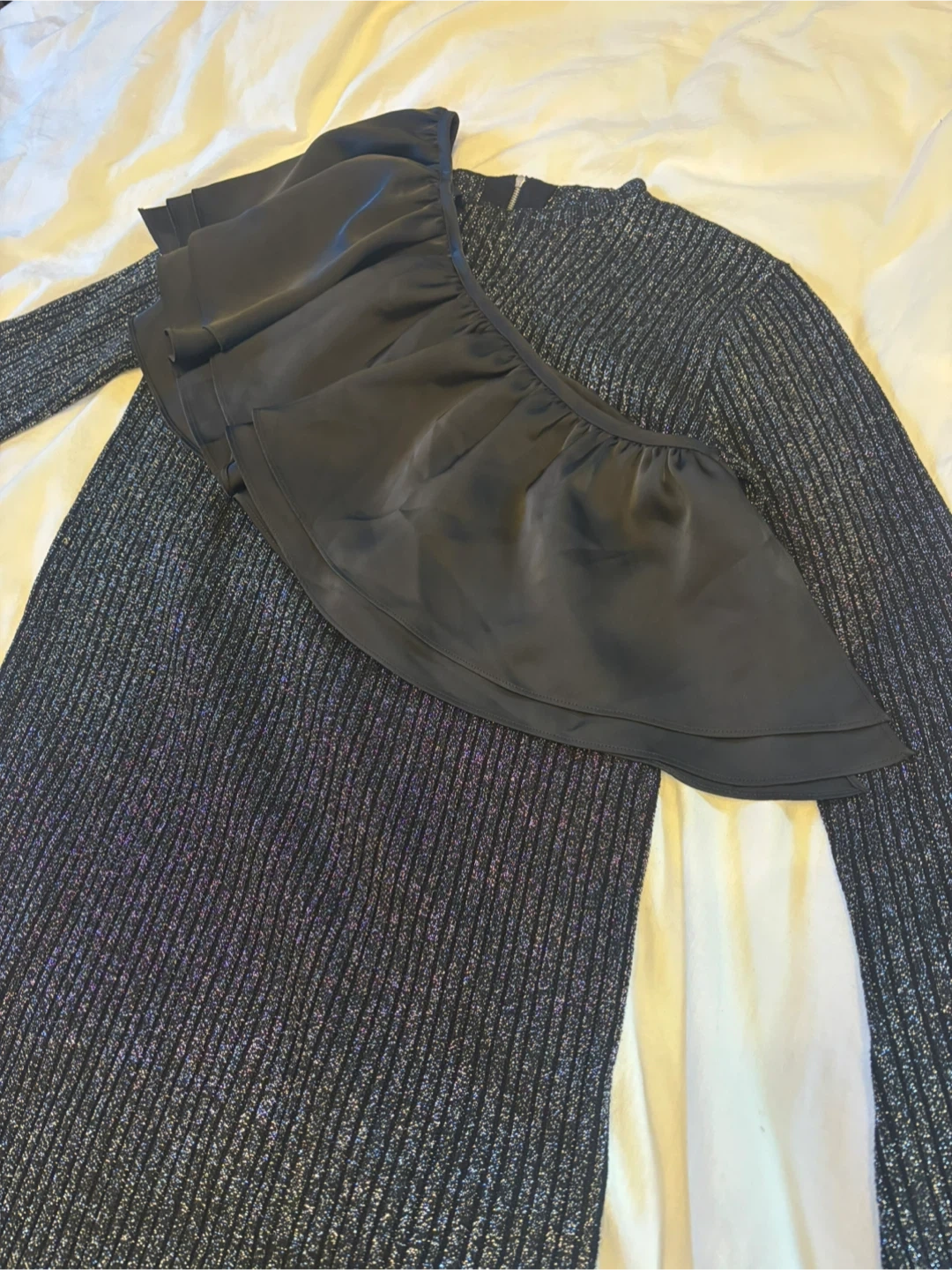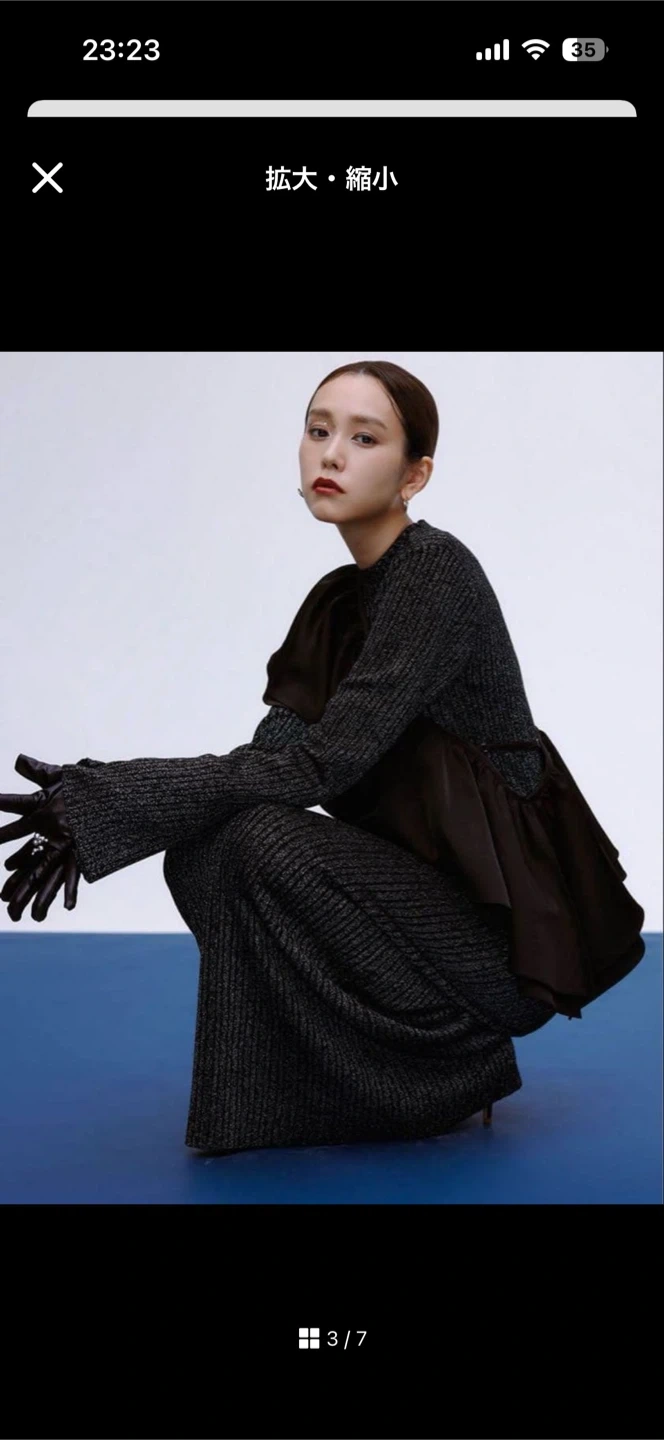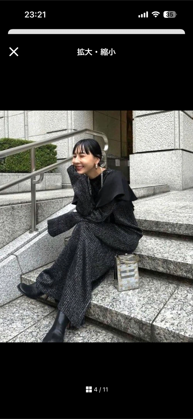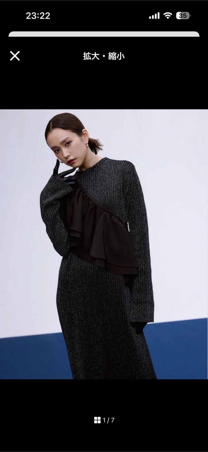 ご覧頂きありがとうございます✨ - ブランド: AMERI VINTAGE - 商品: MIREI KIRITANI × AMERI RAFFLE SET KNIT DRESS - 色: Black - スタイル: オケージョンドレス、ロングワンピース -サイズ: Mサイズ -購入先: 公式サイト -購入価格: 2,9700円 【実寸サイズ】 (リブニットドレス) 着丈:129cm 肩幅:40cm 袖丈:64cm バスト:46cm 【付け襟】 着丈(肩掛け):43cm 着丈(斜め掛け):35cm(ストラップ調節可能) 《商品説明》 ✴︎MIREI KIRITANIx AMERIコラボアイテム!! Iラインのリブニットドレスにラッフルの付け襟がセットになったアイテム。 ニットドレスはインナーが響かない程度の厚みの編地を使用。細身なシルエットながらも身体のラインを拾いにくいのが嬉しいポイントです。 ワイドスリーブで、さらに二の腕周りの着痩せ効果も期待できます。ラッフルの付け襟はサテン生地で甘すぎず、上品な印象にしてくれます。 ミックスのみ付け襟の素材が異なり、落ち着いた雰囲気に。 襟は、肩に掛けて着用する方法の他に、斜めにしての着用もおすすめ。調節紐が付いている方を肩に掛けてご着用下さい。 一目惚れしオンラインで購入しましたが、着る機会がなく、一度も着用しないまま大事に保管しておりました。 状態、とても良いです✨ クリスマスシーズンにもぴったりで、冬のオケージョンドレスとしてもとても映えると思います✨ (ラメ感がある為写真や夜でも映えます✴︎) とても綺麗なお品ですが、自宅保管の為、ご理解の上ご購入頂きますようお願い致します。