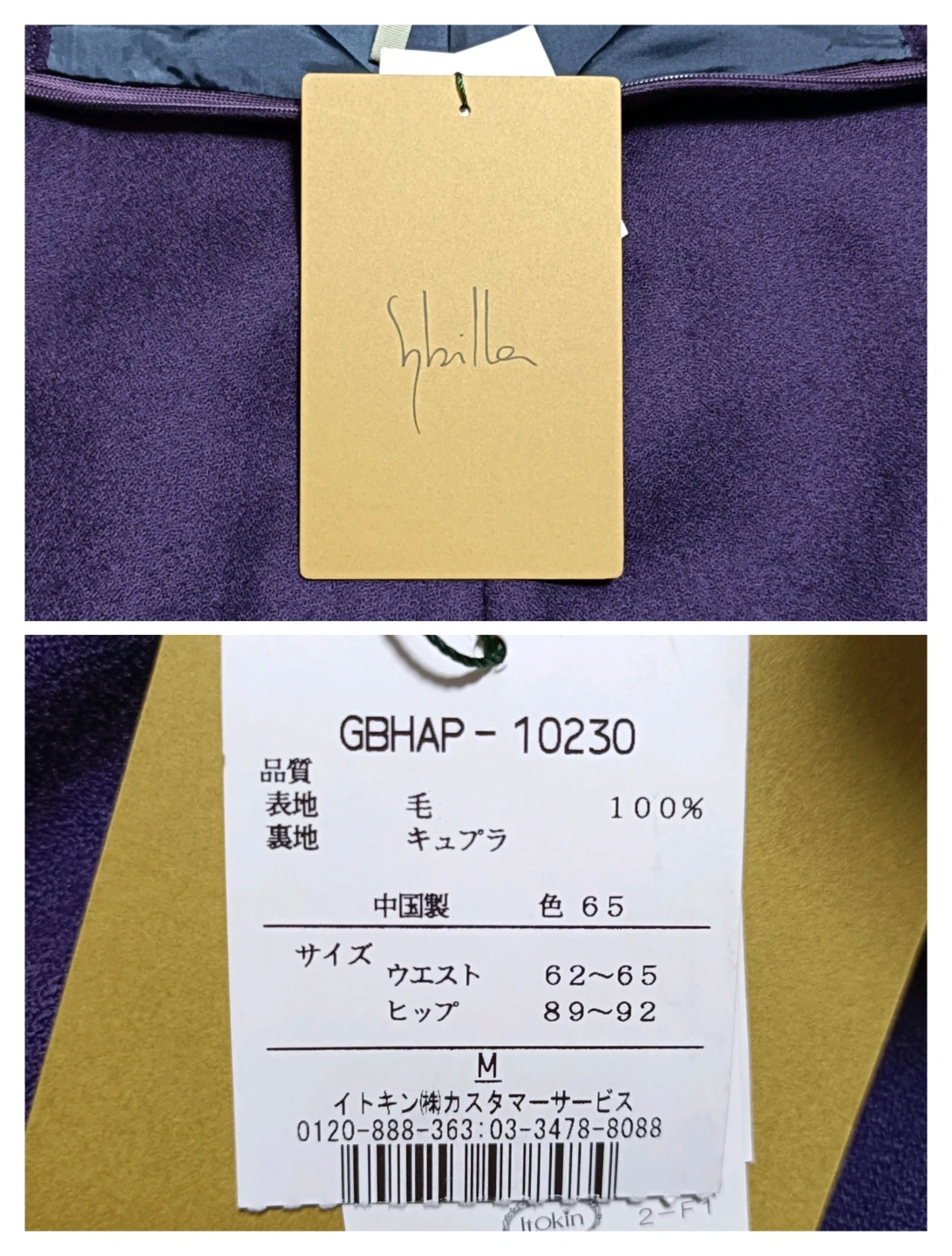 ご覧いただきありがとうございます! ​【新品タグ付き】 Sybilia(シビラ)の、上質なウール素材を使用したスカートです。 ​落ち着いたダークパープル(濃い紫色)と、暖かみのある起毛素材が上品な印象を与えます。秋冬の通勤やお出かけにぴったりの一着です。 □商品名□ ​​​【新品】Sybilia シビラ ウール タイトスカート M 紫 パープル □ブランド□ Sybilla シビラ □表記サイズ□ M ウエスト: 62〜65 cm ​ヒップ: 89〜92 cm □実寸サイズ(cm) □ 【平置きサイズ】 ウエスト:33 着丈:55 ※実寸につきまして多少の誤差はご了承ください。 ※表記サイズだけではなく実寸のサイズをご確認ください。 □カラー□ 紫(パープル、濃紫色) □素材□ 表地:毛100% 裏地:キュプラ □コンディション□ タグ付き、未使用品です。 目立った汚れやダメージなど特にございません。 ※汚れはできる限り写真にて掲載しております。まずは画像をご確認ください。 どうぞよろしくお願い致します。 □商品管理番号□ HH3-W-5610