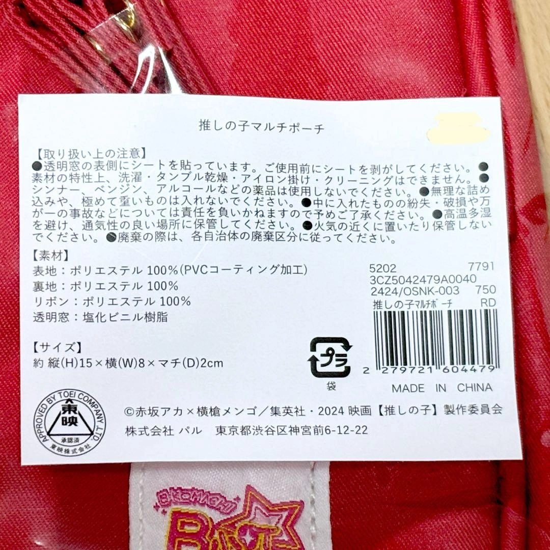【新品・未使用・未開封】 *受け渡しは、「柿の木公園」に設定しておりますが、横浜市都筑区内 でしたら変更可能です! 「推しの子」のドラマ・映画内で着用している衣装をモチーフにした、スリコ限定のマルチポーチです。 ・片面は中身が見えるクリア素材で、お気に入りの小物を見せながら持ち歩けます。 ・バッグの持ち手に取り付けやすいストラップ付きです。 ・ダブルファスナー仕様でどこからでも開閉しやすくなっています。 【サイズ】約縦15×横8×マチ2cm ※素人の自宅保管品であることをご了承ください。 #推しの子 #ドラマ #映画 #コラボ商品 #コラボ #限定 #スリーコインズ #スリコ #3coins #3COINS #ポーチ #マルチポーチ #レッド #赤 #人気 #話題 #ぬい活 #推し活 #推しぬい #ぬいポーチ #ルビー #有馬かな カラー···レッド ご希望の方はお気軽にご連絡ください。