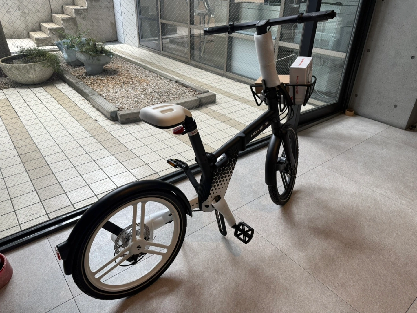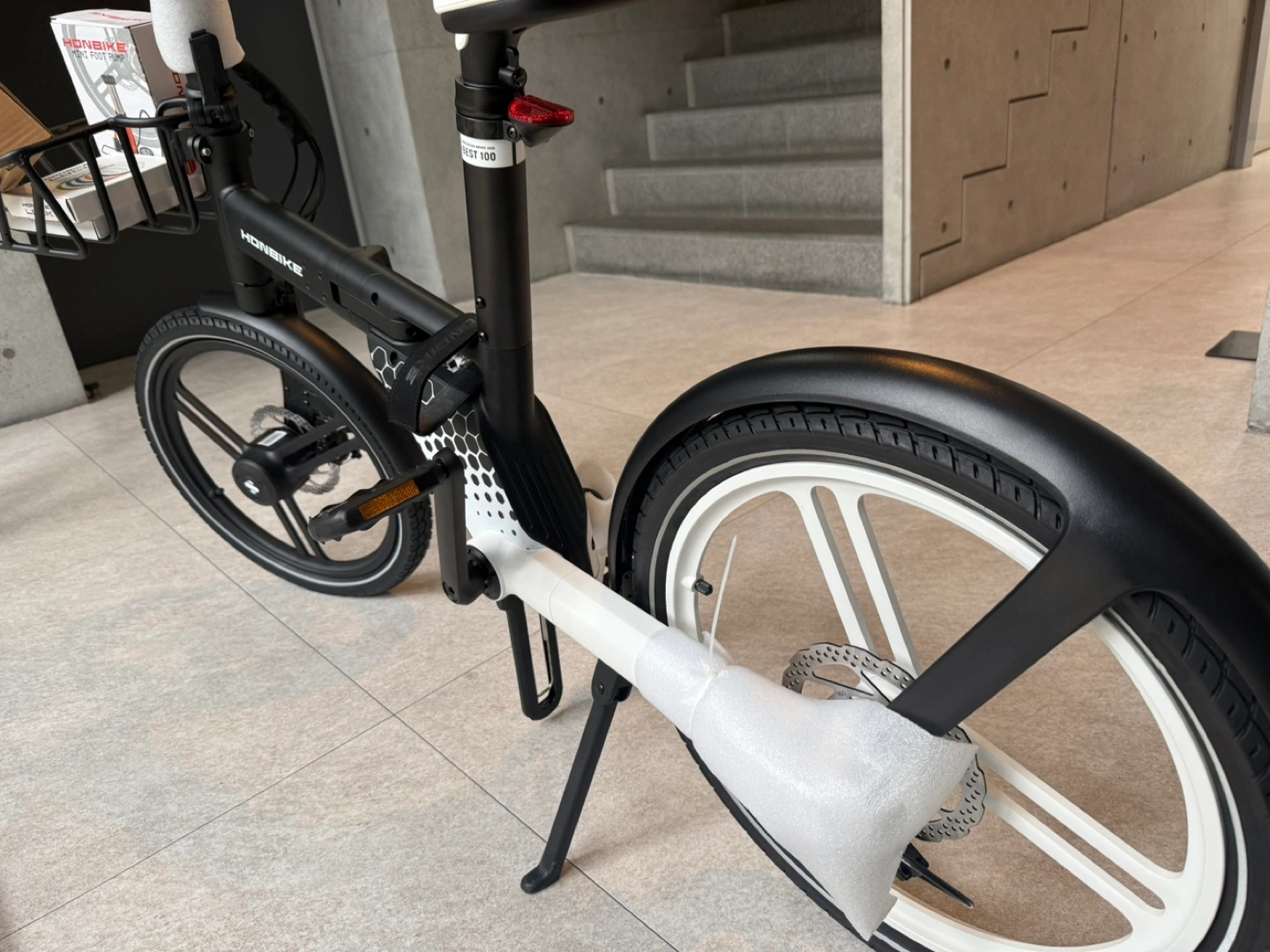 【新品・未使用】HONBIKE 電動アシスト自転車 STONE PLUS(前カゴ&空気入れ付き) カラー: ブラック*ホワイト 最新モデルの電動アシ スト自転車「HONBIKE STONE PLUS」を出品します。 本商品は新品・未使用で、未開封の状態です。 さらに、専用フロントバスケット(前カゴ)と高性能フットポンプ(空気入れ)もセットでお付けします! 【セット内容】 ・HONBIKE STONE PLUS(ブラック)1台 ・HONBIKE専用 フロントバスケット(未使用) ・HONBIKEロゴ入り フットポンプ(空気圧計付き・未使用) 【特徴】 ・チェーンレス設計で快適&静音走行 ・5段階の電動アシストモード搭載 ・前後ディスクブレーキで安心の制動力 ・工具不要で簡単折りたたみ可能 ・最大航続距離:100km以上(モードにより変動) ・USB充電ポート搭載(スマホ充電可能) 【おすすめポイント】 ✔️通勤・通学・街乗りに最適な軽量&スマートデザイン ✔️バスケット付きで荷物の持ち運びも便利 ✔️ポンプ付きでいつでも空気圧管理◎ 【状態】 ・すべて新品・検品のため開封しました ・自宅保管(箱付き可能) 【希望価格】¥199,000円 (税込)(相場よりお得です!) 【受け渡し場所】表参道駅周辺または南青山付近までお越し頂ける方 ご興味ある方はお気軽にご連絡ください! 早い者勝ちとなりますので、お早めにどうぞ🚲✨