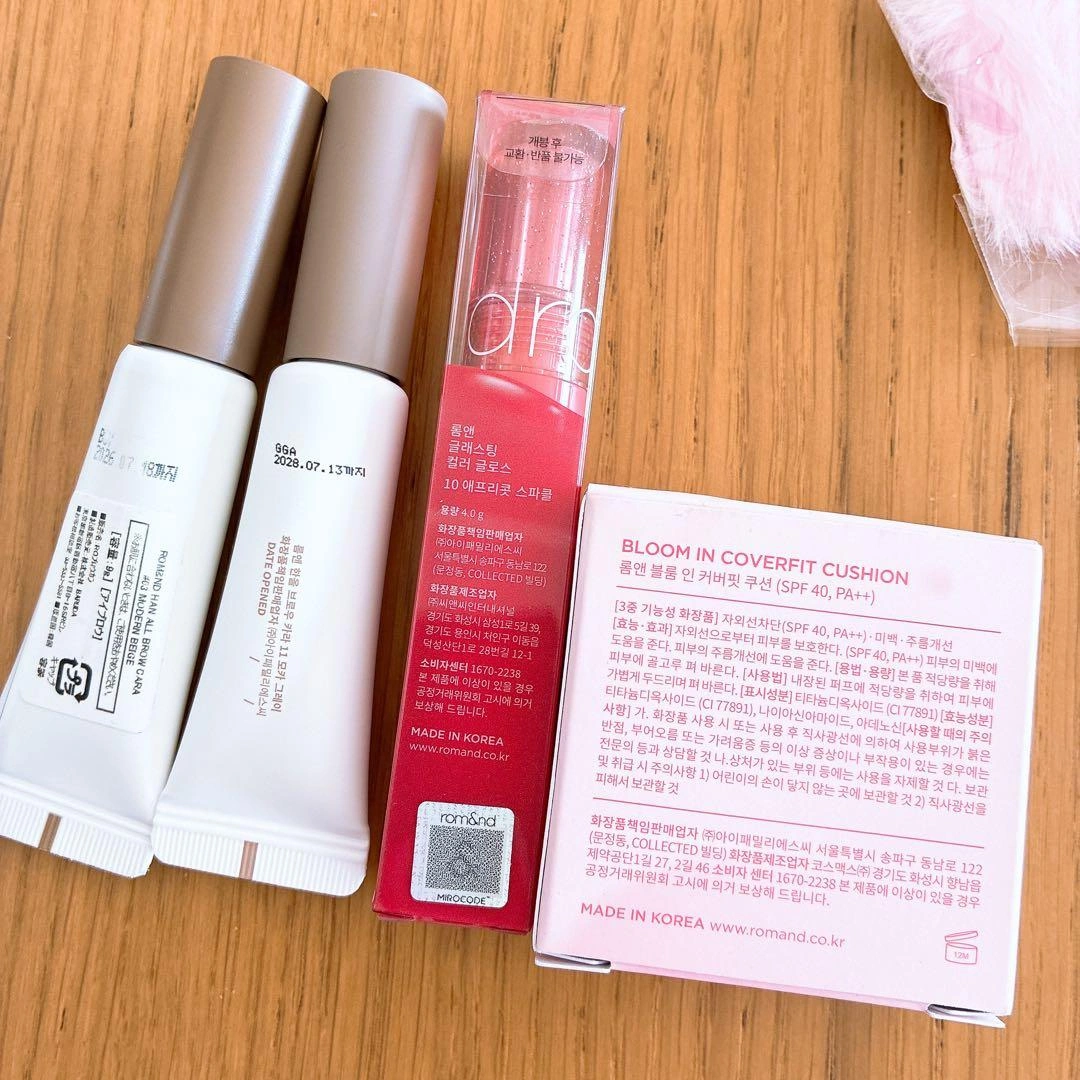 romand ロムアンド ①アイブロウマスカラ HAH ALL BROW CARA モダンベージュ 3回程使用 ②アイブロウマスカラ HAH ALL BROW CARA モカグレー 試し塗りのみ ③GLOSS 10アプリコットスパークル Apricot Sparkle 【新品・未開封】 ④BLOOM IN COVER IT CUSHION ペタルベージュミニ 23 PETAL BEIGE MINI 【新品・未開封】 - ブランド: romand - 商品名: HAH ALL BROW CARA - 商品名: GLOSS - 商品名: BLOOM IN COVER IT CUSHION - 色: ペタルベージュミニ - 数量: 4点セット ご覧いただきありがとうございます。