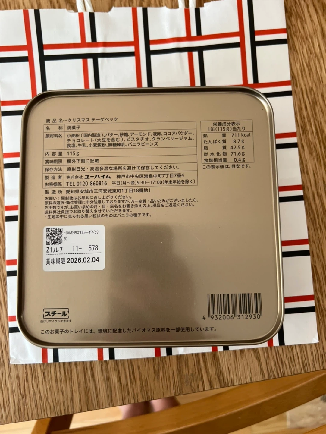 ユーハイムのクリスマス テーゲベックです。 【情報】 ブランド:ユーハイム 商品名:クリスマス テーゲベック 賞味期限:2026.02.04 定価:2,160円/1箱