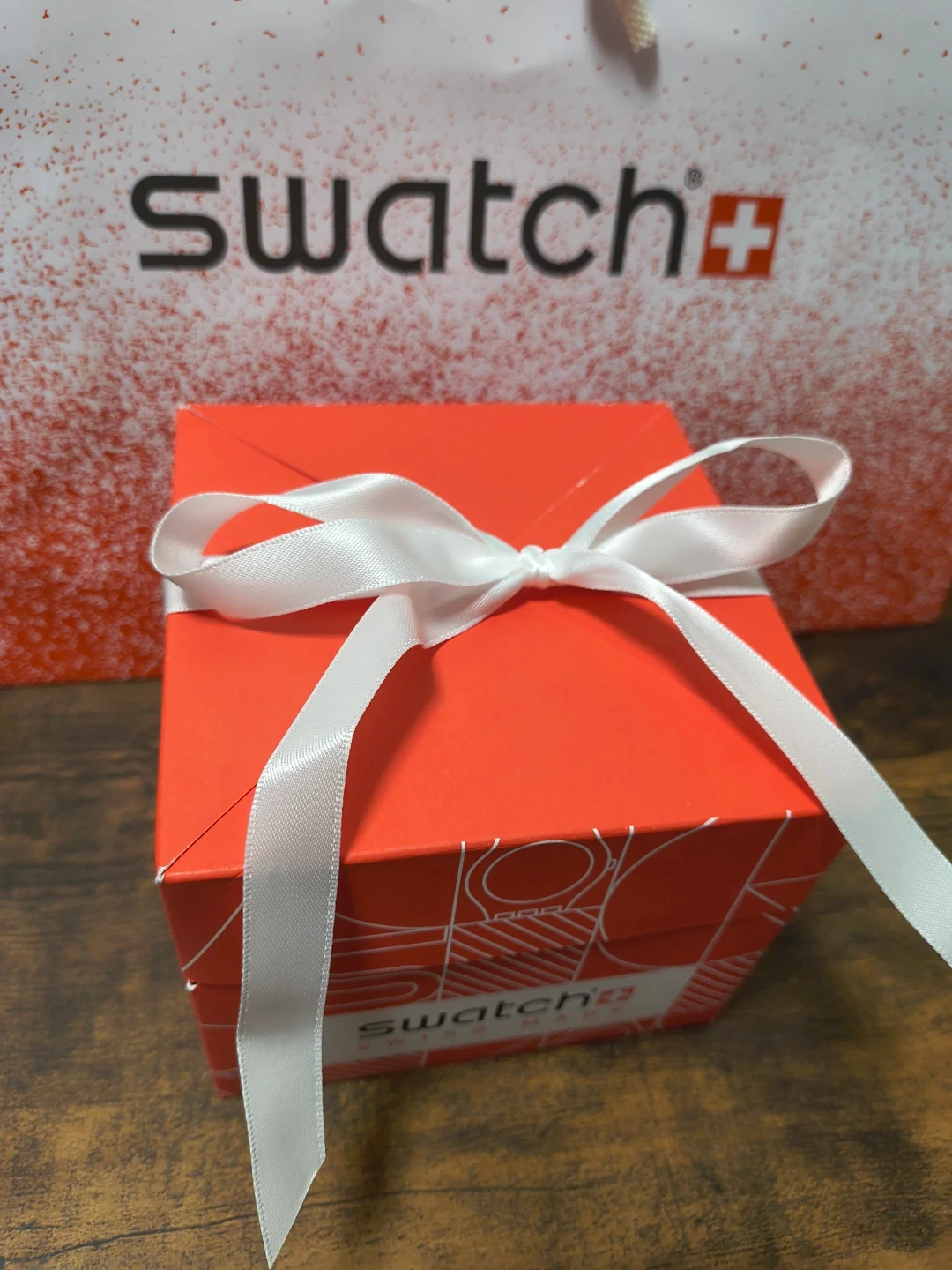 OMEGA Swatch BIOCERAMIC MoonSwatch Mission To The Moonphase Snoopy White 【新品・2025年12月購入】 オメガ スウォッチ バイオセラミック ムーンスウォッチ ミッショントゥザムーンフェイズ スヌーピー 白 本体の他に専用箱、ギフト用箱、説明書、保証書、ショップ袋2枚が付属します。クリスマスギフトにもそのままお使いいただけるかと思います。また、写真7,8枚目の新品の本革替えベルト(レザー・ホワイト Dバックル付き)をお付けします ※他サイトでも同時出品しているため、予告なしに終わることがございます。 2025年12月8日にswatch銀座店にて購入しました。店頭にて現品確認をした後は撮影のために開封したのみで、盤面シールもついたままの完全な新品となります。写真のうちの最初の2枚は公式サイトのものを使っています。 贈り物として買ったのですが、贈る相手が別のものを欲しがっていることが判明したため出品いたします。 別のモデルと2つ同時購入ですが、ご希望であればレシートもお付けします。ショップの専用袋もありますので、そのまま贈り物にも使えるかと思います。 ブランド品かつ新品未使用となりますため、ご購入後のキャンセルや返品はご遠慮下さい。どうぞよろしくお願いします。