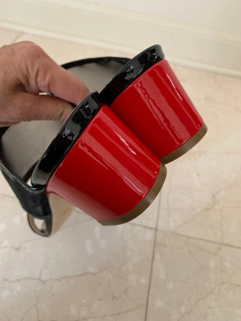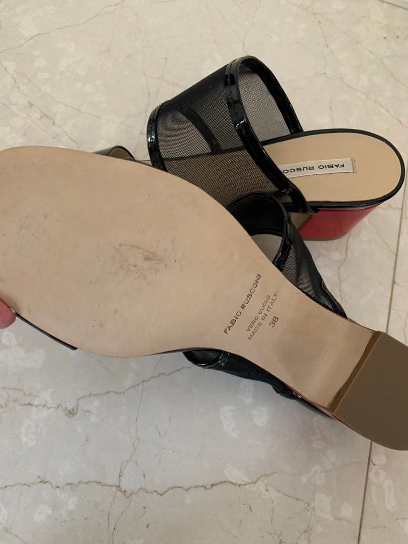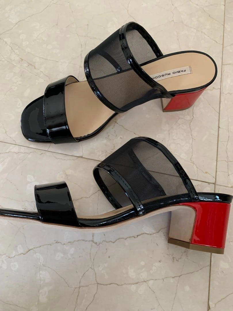 試着程度の使用です。 エナメルとメッシュのベルトにレッドのヒールのアクセントがとてもおしゃれです。 夏に限らず1年中使い回しが効くアイテムだと思います。 ヒール高さは約6センチで安定感があり、また幅もたっぷりあります。 裏にシールはがし跡がありますのでご了承下さい。 ご希望の方はお気軽にご連絡ください。