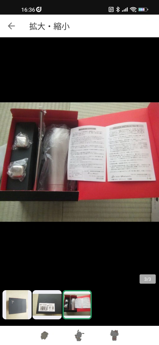 真空断熱構造のシルバータンブラー、氷石2個とストロー付き。保温・保冷力に優れた機能的な真空二重ステンレスカップと、冷凍庫で冷やして氷の代わりとして使えるフローズンメタルのセット。氷のように溶けて飲み物を薄めることがないのでワインやビール、ジュースなどにもおすすめです。 箱のまま棚に保管していましたので、箱に若干の擦れやつぶれはあると思いますが、中身は新品です。定形外郵便で発送しますが、他の配送方法をご希望の場合は差額を支払っていただけたら対応します。現在もヤフーや楽天で送料込みで3000円ほどで売られているものです。 - モデル番号: GR-1338 - 付属品: 氷石2個、ストロー - 材質: 真空断熱 - 色: シルバー - ブランド名: グラシア 箱サイズ 19×16.5×10.6cm 箱重量 390g 材質 ステンレス レンジ× 食洗機× 内容 真空二重構造カップ(φ7.4×H14.6cm/350ml)×1個、フローズンメタル(角:2.5×2.5×H2.5cm)×2個、ステンレスストロー(約20cm)×1個 ご覧いただきありがとうございます。