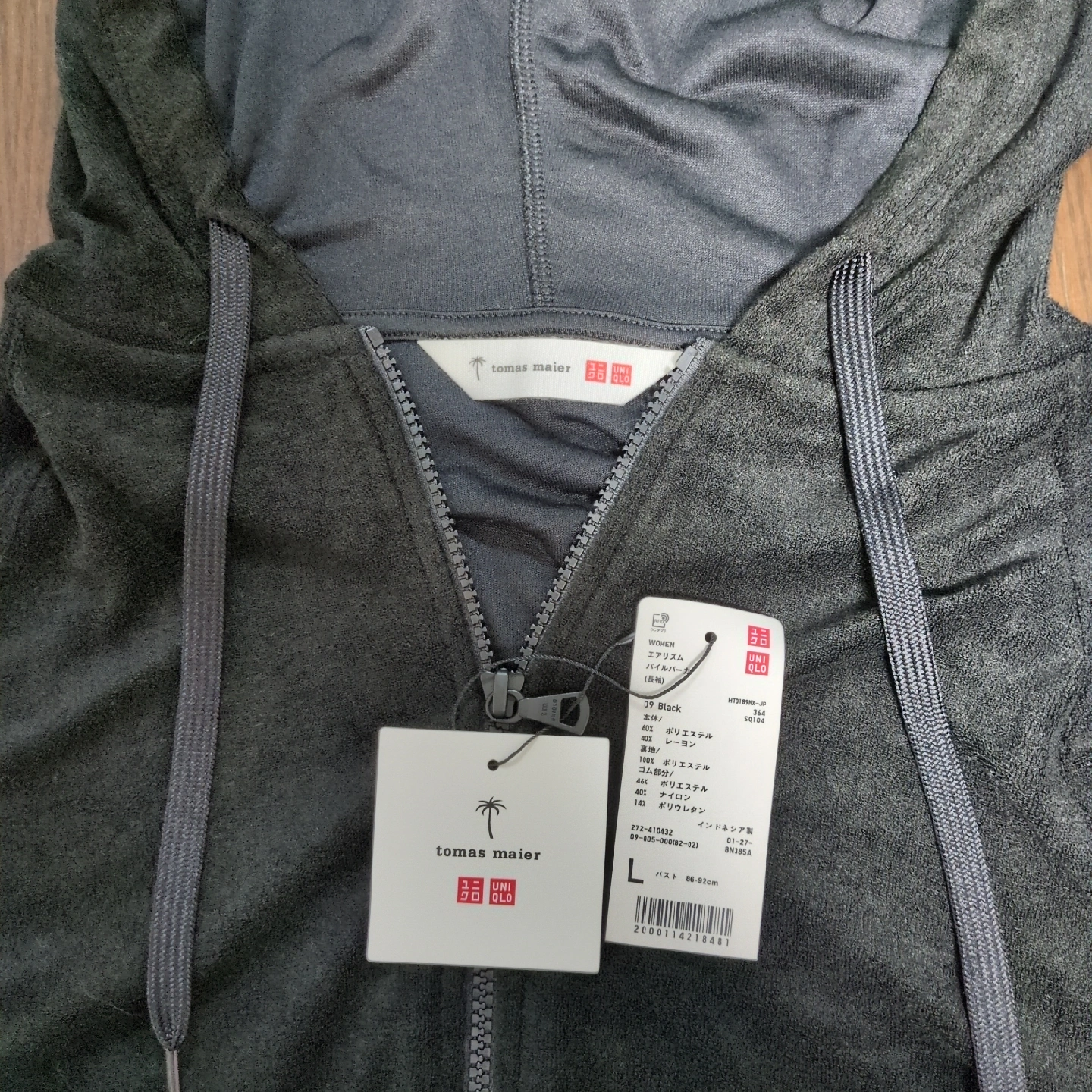 ユニクロのパーカーです 【情報】 ブランド:ユニクロ サイズ:L(バスト86-92cm) カラー:ブラック 素材:ポリエステル60%、レーヨン40% 【状態】 新品未使用