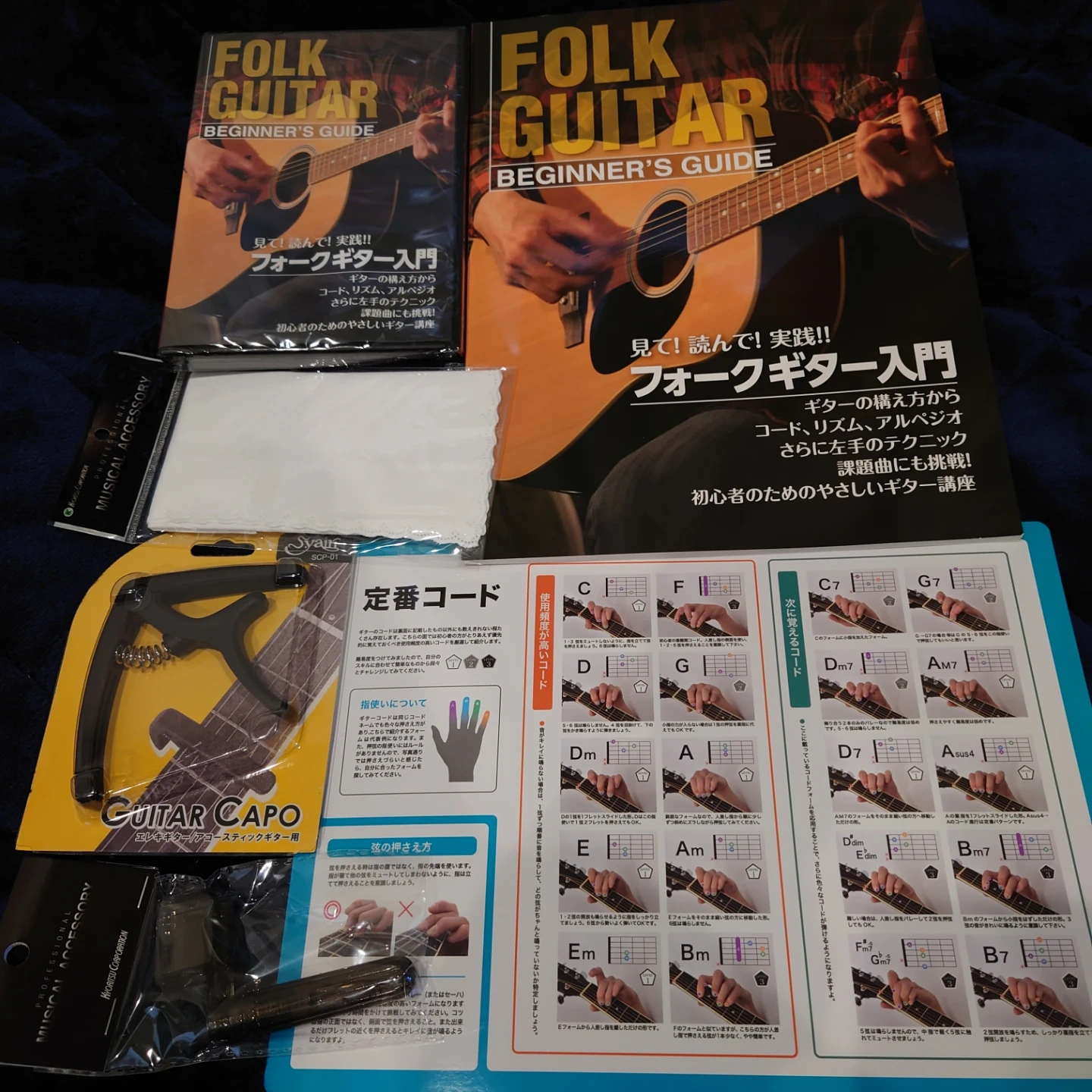 ①フォークギター入門(教則DVD) ②フォークギター入門(教則本) ③ギターコード表 ③ギター用クロス ④カポタスト ⑤ワインダー(ペグ回し) お取引場所🔁は幡ヶ谷から自転車🚲️で10分程度以内の場所なら行けます🥳(新宿、中野新橋、代田橋、笹塚、渋谷、下北沢、方南通り、中野通りなど)