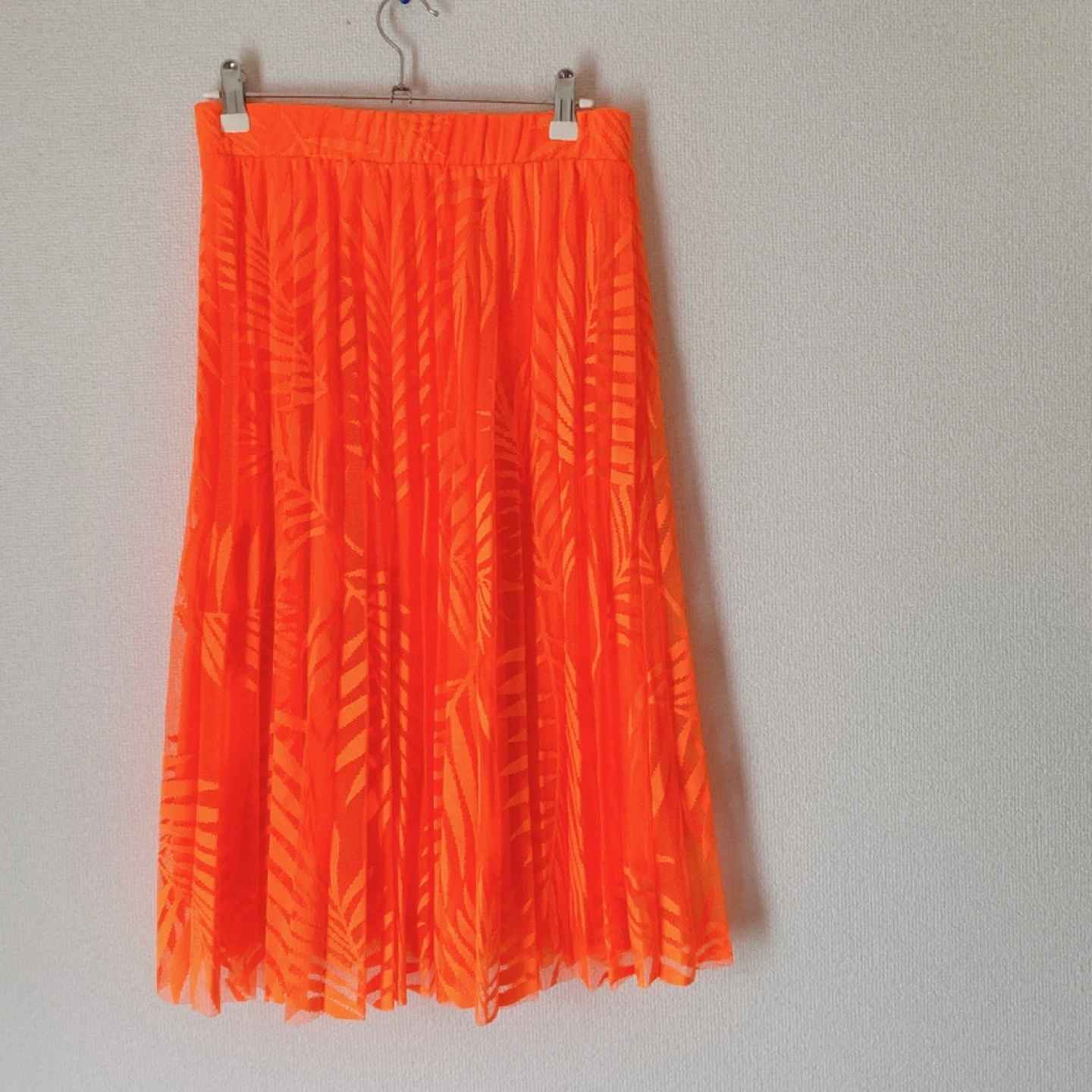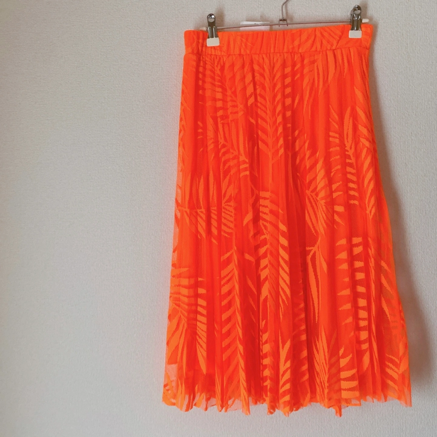 あたたかさベルシュカの葉柄の蛍光オレンジの発色が綺麗なオレンジのスカートになります。 アメリカSサイズなので、日本ではMサイズ相当だと思います。 ウエストはゴムになっているのでゆったり履くことができます。 平置きで ウエスト 約32cm(ゴムを伸ばせばMAX約42cm) 丈 約67cm 新品未使用ですが個人保管なので、 神経質な方はご確認の上、お願い致します☺︎ タバコは吸いません