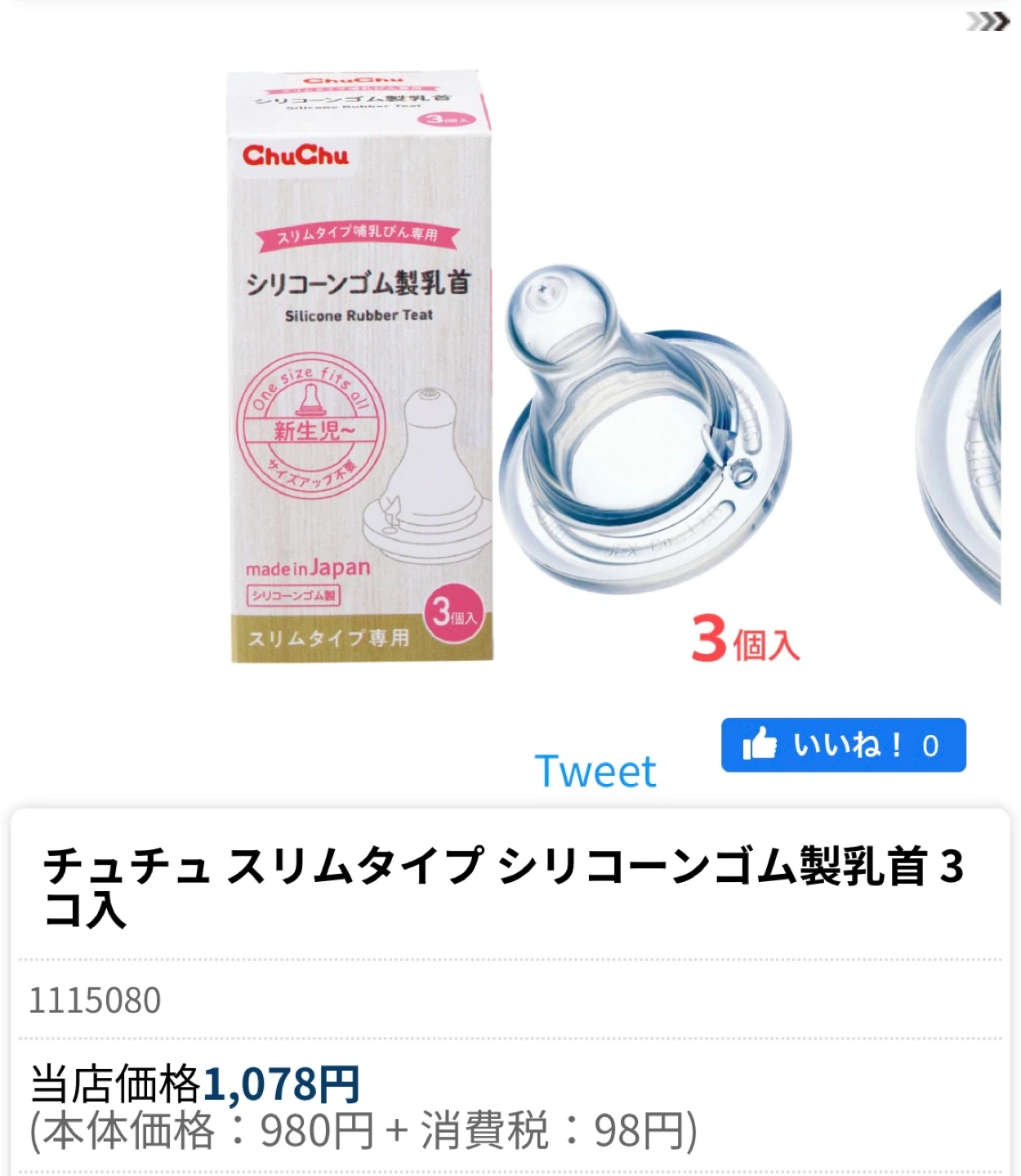 チュチュ スリムタイプ シリコーンゴム製乳首 3個入です。 ・スリムタイプ哺乳びん専用 ・シリコーンゴム製 ・3個入 ・日本製 透明感のある丈夫なシリコーンゴム製 赤ちゃんがミルクを飲む動きを自然にサポート 吸う力とくわえる力でミルクの出方をコントロールできるスーパークロスカット乳孔で、 新生児から卒乳までサイズアップ不要の乳首。 キャップによる空気調整不要。 ママのおっぱいと同じように飲めるので、赤ちゃんのあごや口の自然な発達を助けます。