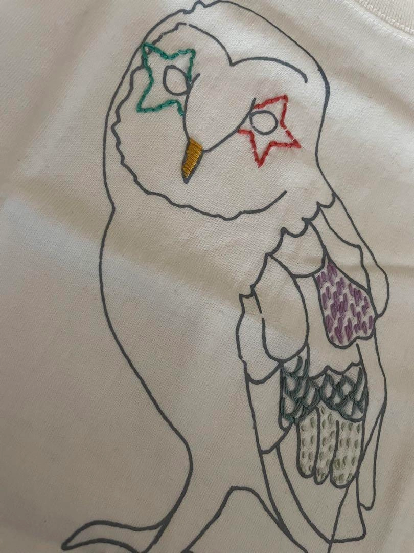 カラー···ホワイト 袖丈···半袖 新品未使用 日本のアーティストの作品Tシャツです フクロウのプリントに、部分的に刺繍が施されています。 色彩のセンスが良くかわいいデザインです。 しっかりとした生地のTシャツです 定価は5000円くらいかと思います 肩幅27 身幅31 着丈39.5 季節感···夏 季節感···夏,春 季節感···夏,春,冬 季節感···夏,春,冬,秋 ご希望の方はお気軽にご連絡ください。