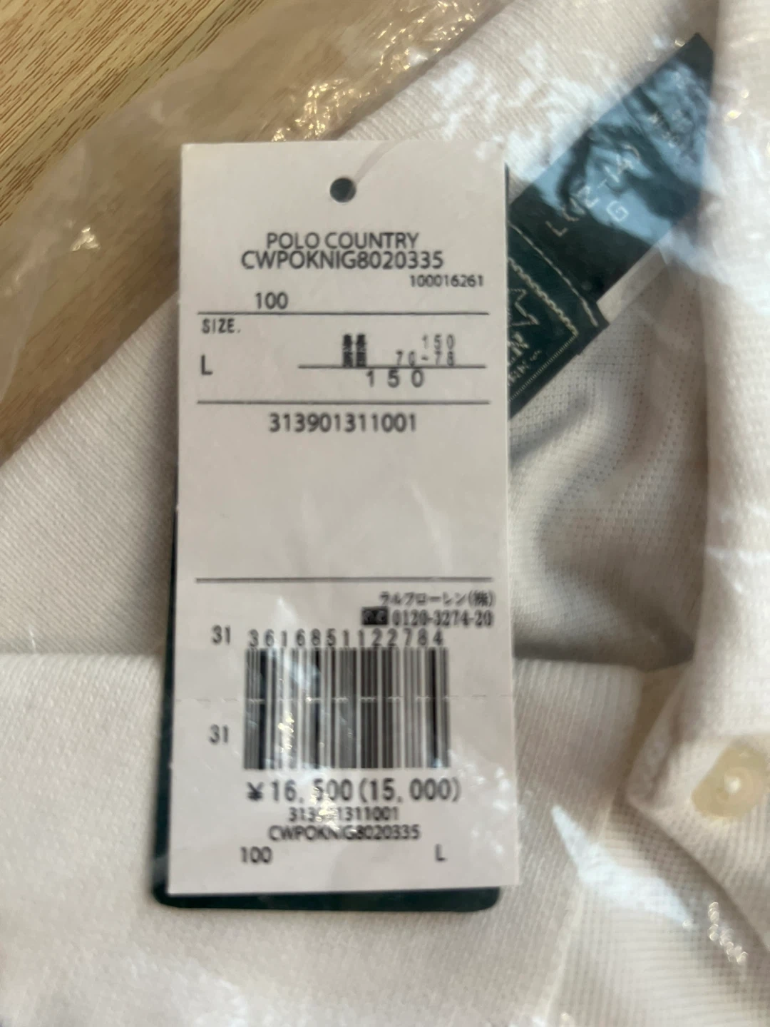 新品未使用 ポロカントリー ポロシャツ 白 Lサイズ 150cm CWP0KNIG8020335