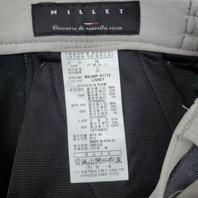 MILLET ミレー クライミング アウトドアパンツ 裏起毛  レギュラーフィットタイプ ストレッチ 男女兼用 町屋駅前周辺まで来ていただける方でしたら お値引き可能です! 【商品詳細】 MILLET ミレー 韓国正規商品の為ハングル表記になっています。ポケットファスナー周りには反射板付いてます。膝下が少しスリムになっているので、園芸や畑作業等の長靴にもいいと思います。 生地がしっかりしているのでアウトドアや作業着として幅広く使えます。 内側は裏起毛になっているので寒い季節にぴったりです。膝の模様は滑り止め加工されています。 【サイズ】 韓国表記 76 ウエスト 約77cm ヒップ  約97cm 股上   約23cm 股下   約78cm ※素人採寸ですご理解下さい サイズ参考写真でもご確認下さい 【EUROサイズユニセックス:Sサイズ相当】 【日本サイズ:Mサイズ相当】 ウエスト72~80 ヒップ86~95 身長160~170 股下78 【カラー】 グレー ブラック 【生地】 表面の表面 ポリエステル88% ポリウレタン12% 表面の裏面 ポリエステル93% ポリウレタン7% 配色1 表面 ポリエステル88% ポリウレタン12% 裏面 ポリエステル93% ポリウレタン7% 配色2 表面 ナイロン87% ポリウレタン13% 裏面 ポリエステル100% 【状態】 新品未使用品ですが撮影のため一度開封しています。アウトレット商品、自宅保管の為ご理解のある方のみご購入頂きますよう宜しくお願い致します。 【受け渡し場所】 町屋駅周辺 土日祝お時間調整可能です。 平日は仕事している為19時以降可能です。 場所にもよりますが16時以降可能な時もあります。 町屋駅以外でしたら東京メトロ、都営地下鉄線各駅の改札口での受け渡し可能です。 よろしくお願い致します。