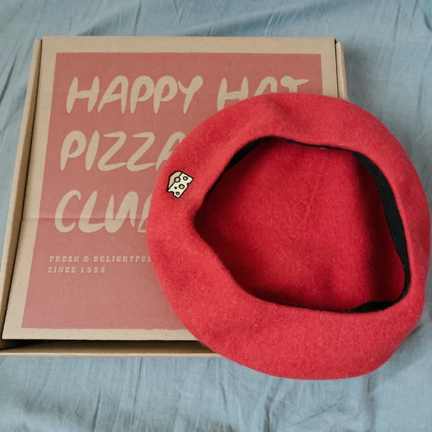 チーズのモチーフもかわいいピザの入れ物に入ったベレー帽になります。 定価7000円 お箱に入れてお渡しします。 箱はインテリアにも使えます。 https://www.e-begin.jp/article/11532/ 新品未使用ですが個人保管なので、 神経質な方はご確認の上、お願い致します☺︎ タバコは吸いません