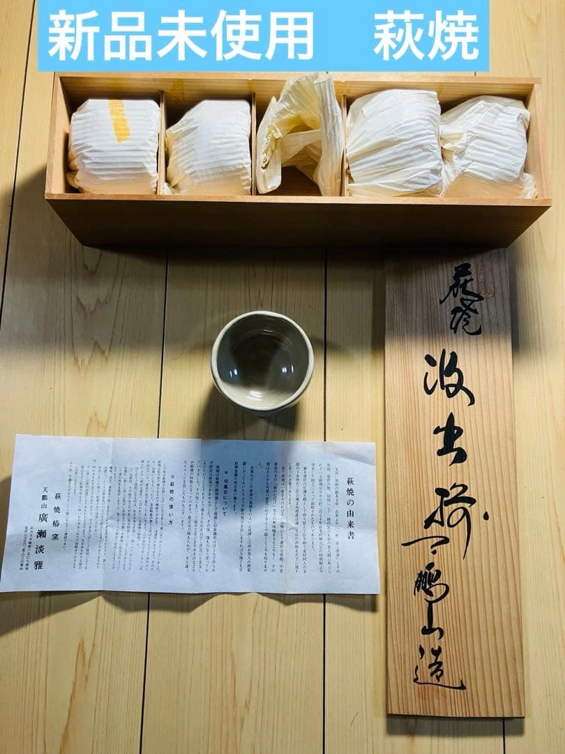 新品未使用 萩焼 陶器製湯飲み 5セット 木箱入り