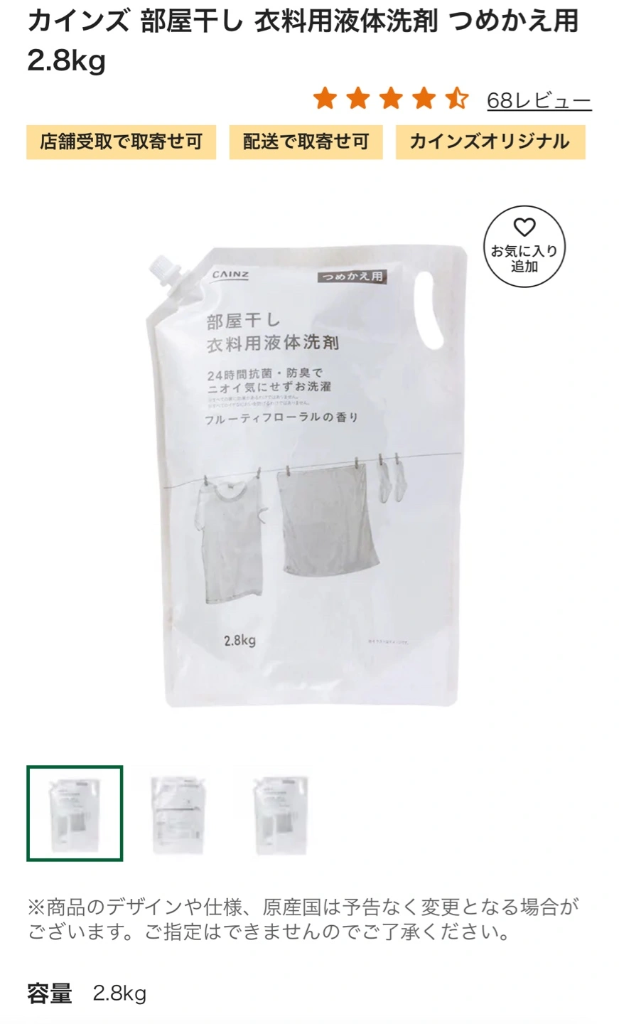 【情報】 ブランド:カインズ 種類:衣料用液体洗剤 本体サイズ:25×9×35cm 容量:2.8kg (2860ml) 新品未使用です カインズ商品を試してみたい方にもおすすめです^ ^ 断捨離中のため必要な方にお譲りします NOクレームNOリターンでお願いします