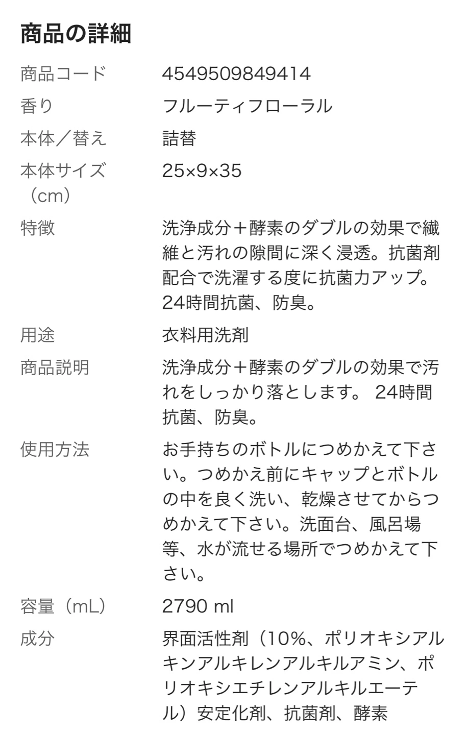 【新品未使用】部屋干し 衣料用液体洗剤 つめかえ用 2.8kg