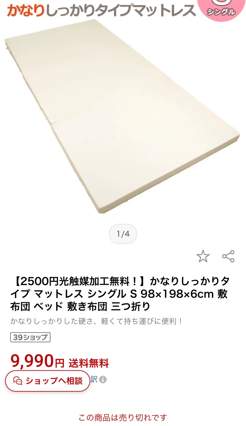 ⚫︎三つ折りマットレス 【サイズ】98×198cm 厚み約6cm 【外装生地の組成】ポリエステル100% 【材料】ウレタンフォーム 【構造】三つ折り 側:中国製 中材:日本製 ⚫︎ライトダウン羽毛掛け布団 商品サイズ: 150×210cm 側地: ポリエステル100% 詰めもの: ダウン50%・フェザー50% 詰めもの重量: 0.6kg ★広尾一丁目交差点まで取りに来られる方限定。 このままのお渡しになりますので、お車などでお越しになった方が良いと思います。 11/19~22は不在になりますので、それ以外のお日にちでお渡しいたします。 ★現金かPayPayかハチペイも可能です(ᐡ ᵔᴥᵔ ᐡ) ご検討よろしくお願いします!
