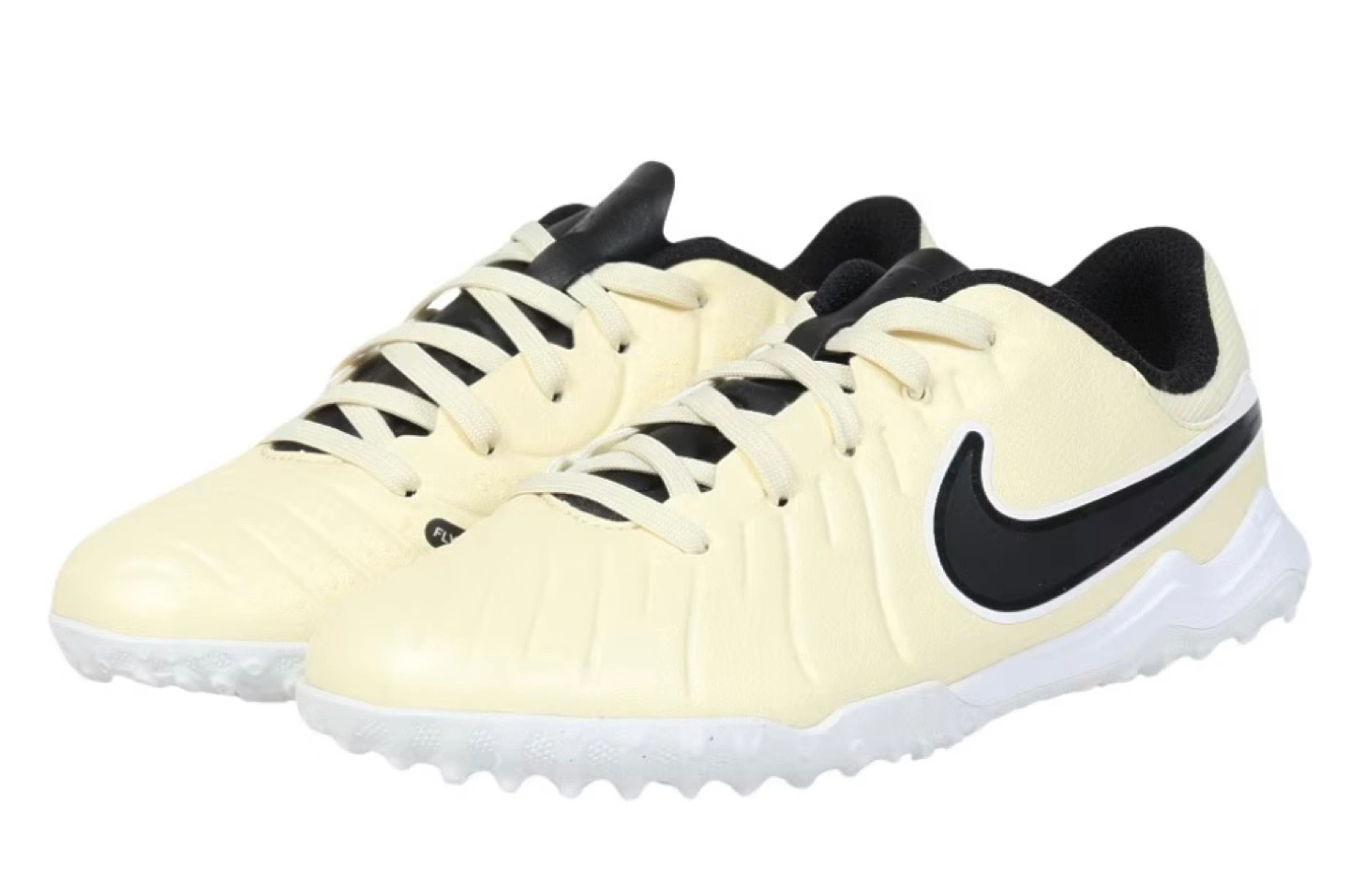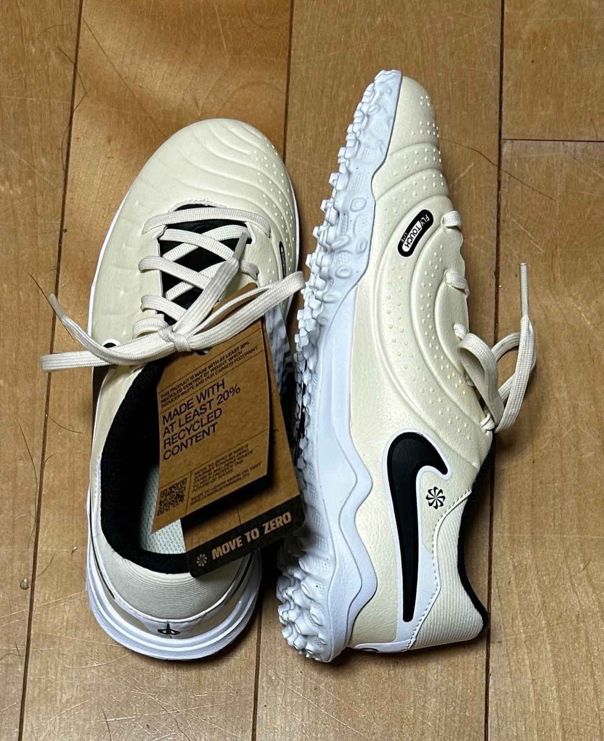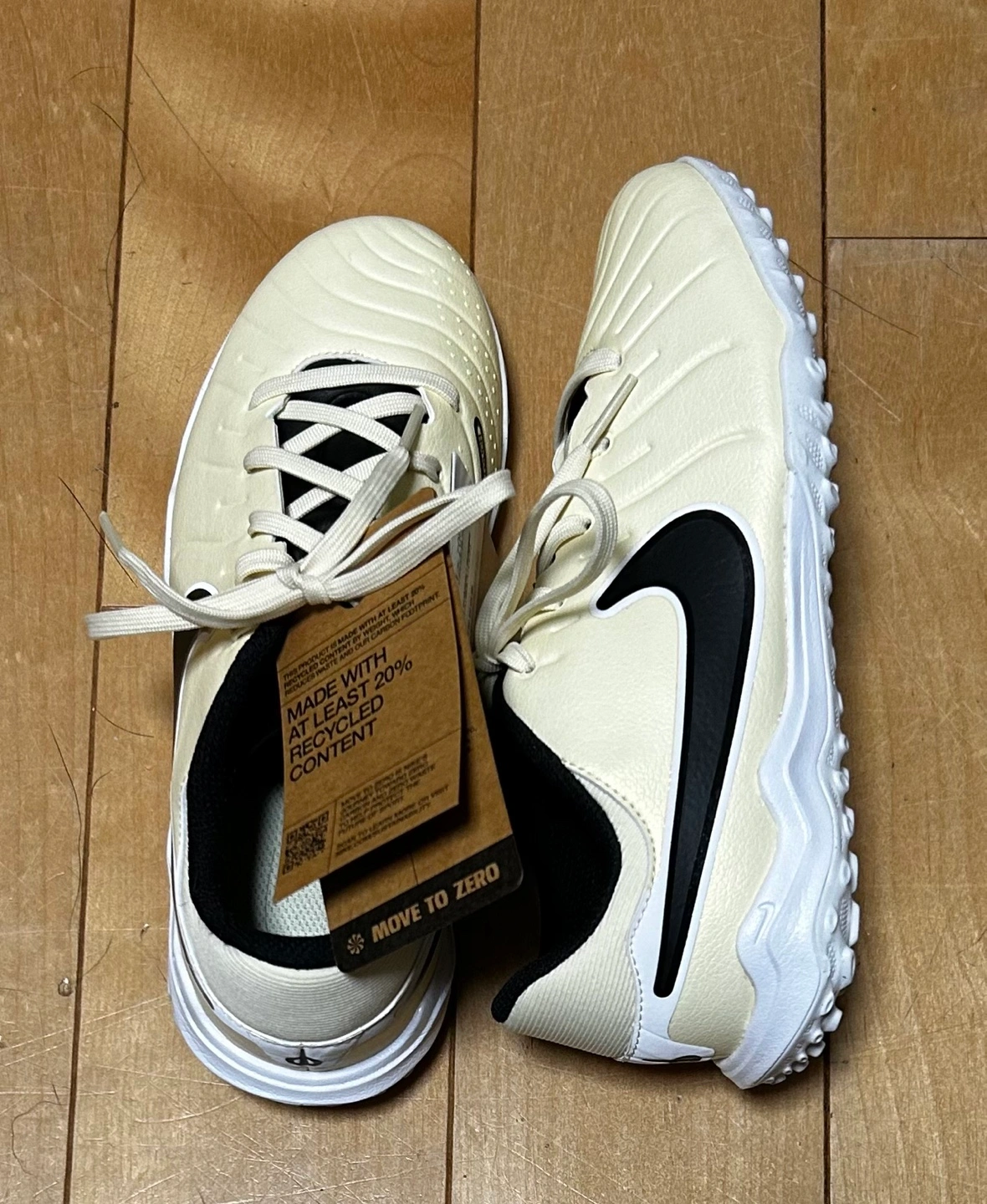 ナイキジュニアサッカートレーニングシューズ ティエンポレジェンド10 アカデミー パールの入ったクリーム色のサッカーシューズで、トラクションソールが特徴。 - ブランド: Nike - 色: クリーム/ブラック - サイズ: 23.0 - スタイル: サッカーシューズ - 付属品: タグ付き - 特徴: トラクションソール フィールドで優れたトラクションを発揮:ラバーアウトソールがターフのグラウンドでトラクションを発揮。 毛足が短めの人工芝フィールドに最適 クッション性を備えたインソール 室内での試着のみです。サイズが合わず出品致します。 受け渡し場所はある程度ご相談に応じます。