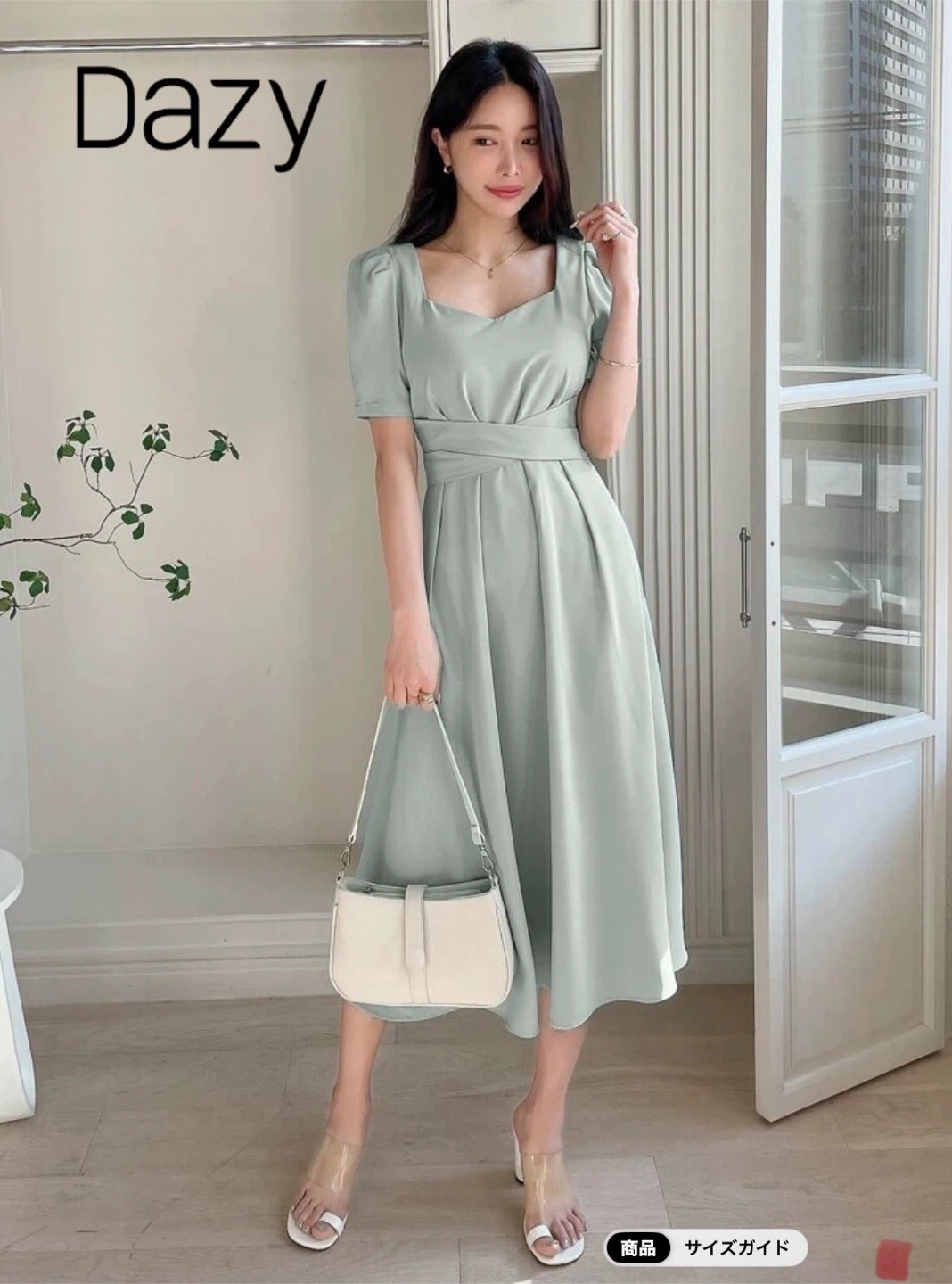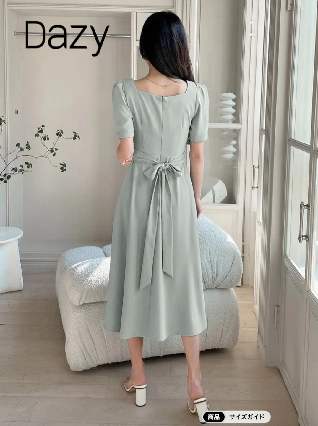 SHEIN ミントグリーンのバックリボン付き清楚な雰囲気のワンピース 定価2906円 - ブランド: Dazy - 状態: 新品 未使用 - スタイル: ワンピース - カラー: ミントグリーン - デザイン: バックリボン付き 間違えて同じ物を2つ買ってしまったので1つ出品します。 サイズは日本サイズのMです。 付属の袋が大きかった為シワになってたので 胸元を少しアイロンかける為に袋から出してます。 ミントグリーンとかいてありますが 実際には現物写真のように控えめなブルーグレイに近い色です。