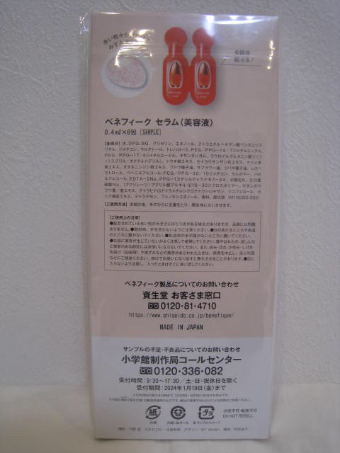 BITEKI×BENEFIQUE ベネフィーク セラム潤いを満たす赤い実の美容液です。 美的 2023年12月号 特別付録 ベネフィーク セラム・・・0.4ml×6包 資生堂
