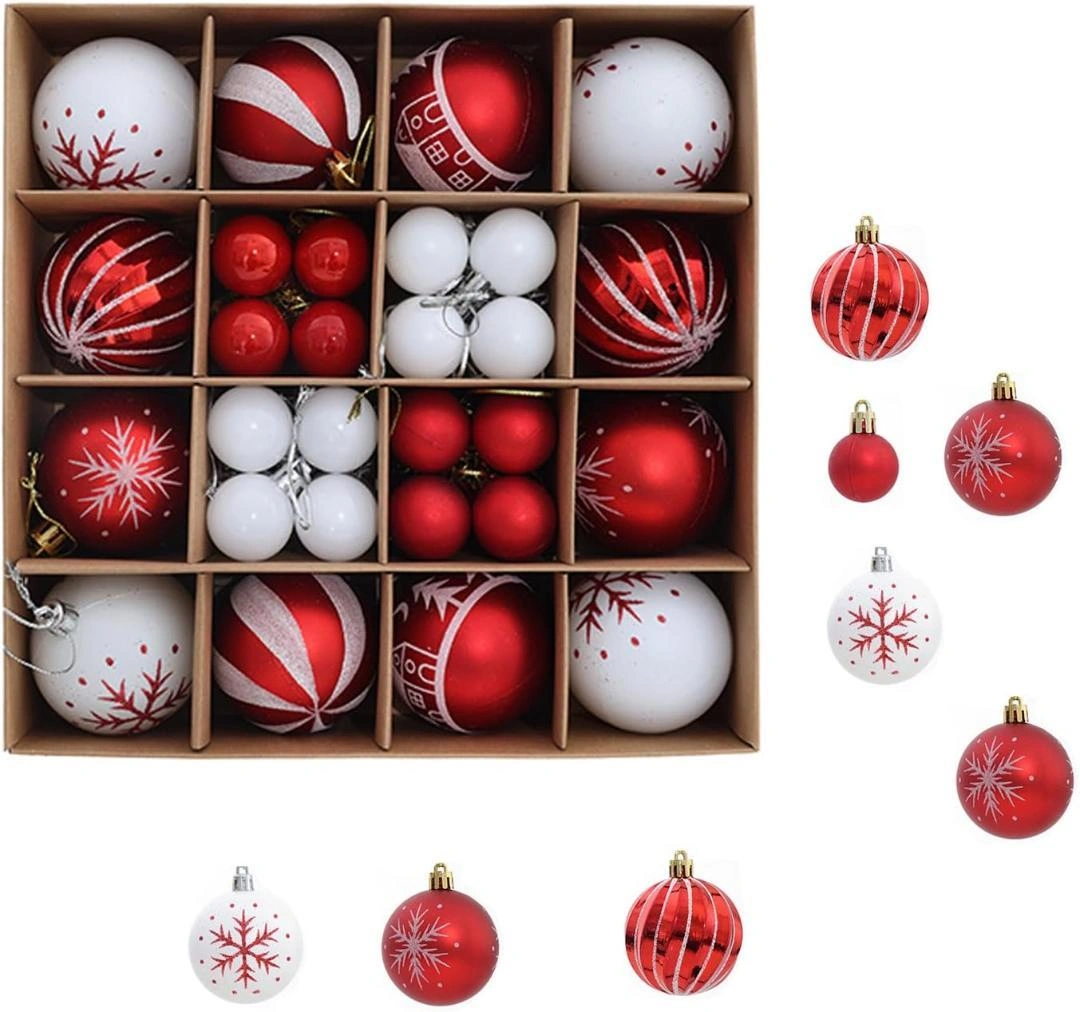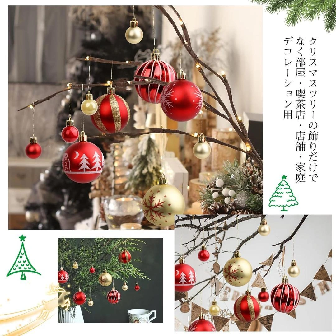 ご覧いただきありがとうございます✨ 色: レッド&ホワイト 【耐久性・美しさと工芸】 落下テスト合格!割れにくい高密度素材。当社のクリスマスボールは、従来の安価なプラスチックとは異なり、高密度で強化されたABS樹脂を採用しています。独自の強化加工を施しており、多少の落下や衝撃にも割れにくい設計が特徴です。ご家族で楽しく飾り付けをしても、誤って落としてしまっても、大切なクリスマスを台無しにする心配が大きく軽減されます。品質への自信があるからこそ、頑丈で長持ちする素材にこだわりました。 【頑丈なパッケージ】 クリスマスオーナメントセットには、いろいろなセットを用意して、ご自分で好きなのを選択可能。各ボールはシームレス接続を採用し、洗練された外観を作り出しています。ボックスには高品質のダンボールを採用し、贅沢感を加えます。 【取り付け簡単】外れにくい安全な吊り輪商品には、しっかりと固定された金属製の吊り輪と予備のリボン紐が付属しています。プラスチック製のもののように簡単には折れたり、外れたりしないため、飾っている最中にボールが落下して割れる心配がありません。また、伝統的なデザインから現代的なアートスタイルまで、豊富なバリエーションをご用意しており、どのよ うなご自宅のインテリアにもマッチする一品です。 ご希望の方はお気軽にご連絡ください。